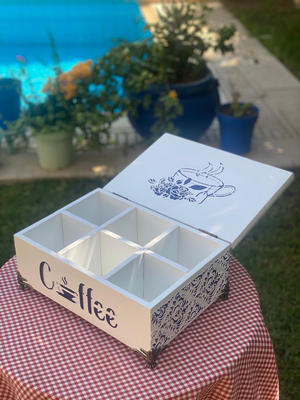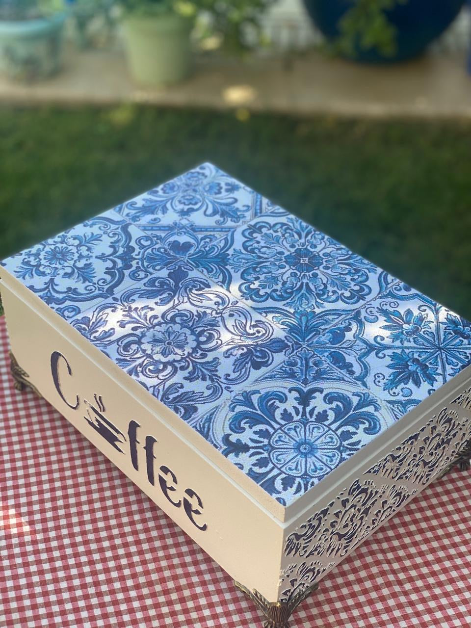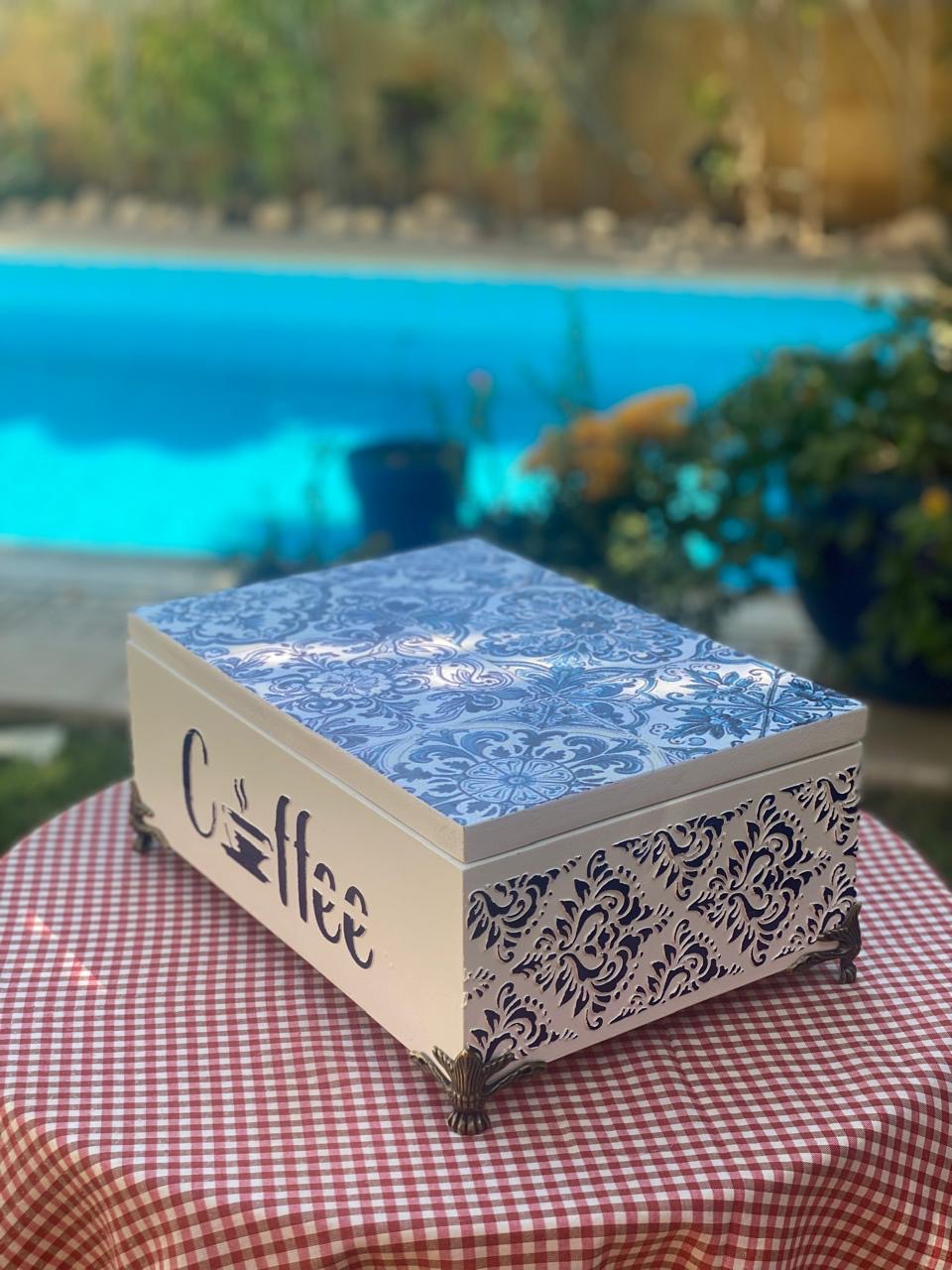 بوكس باكت شاي اوف وايت مربعات ازرق وشغل بارز