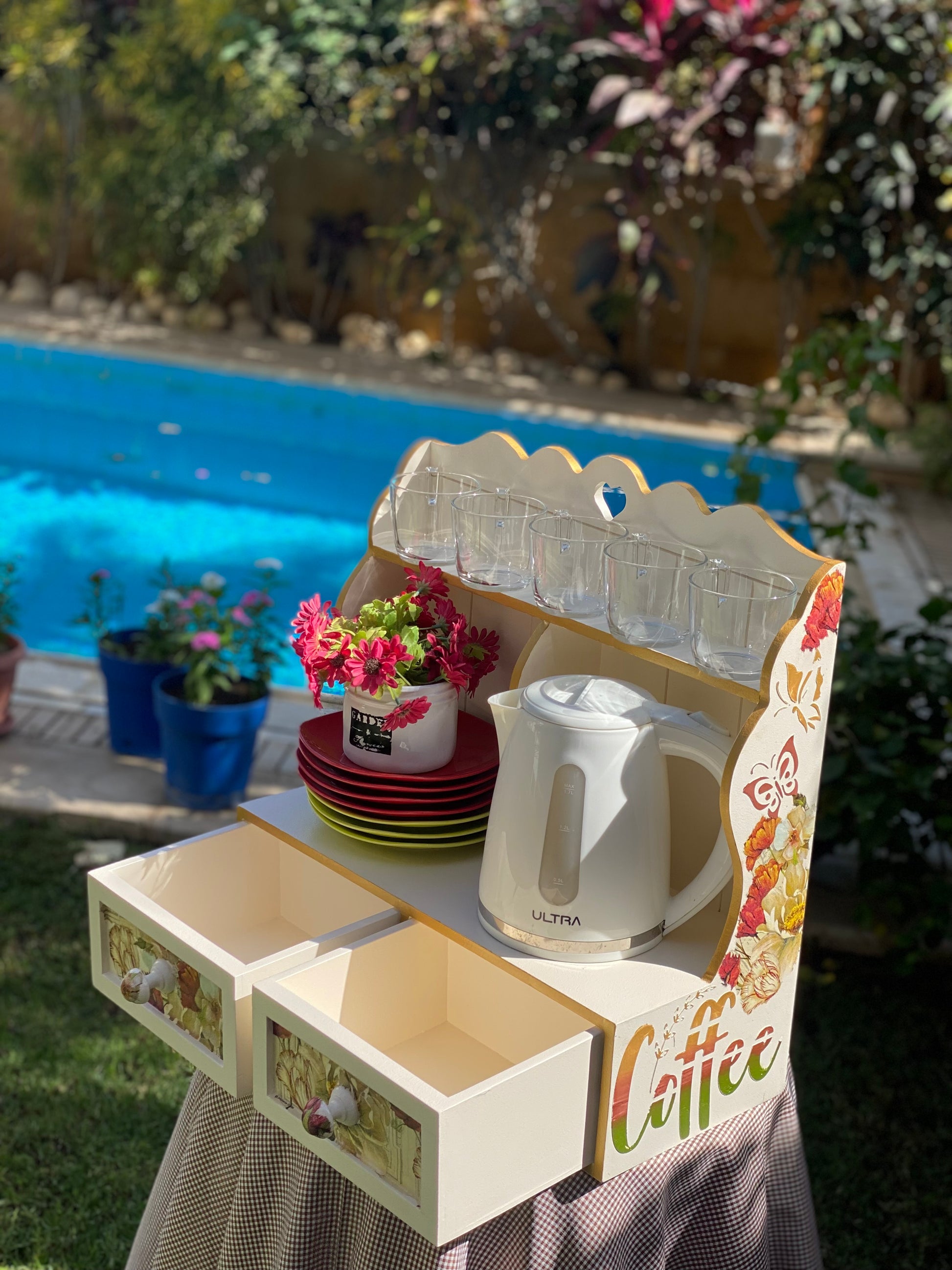 بيت مجات قابل للتعليق بيج ساده ورده تايلا مع فراشات بارزه واطراف دهبي