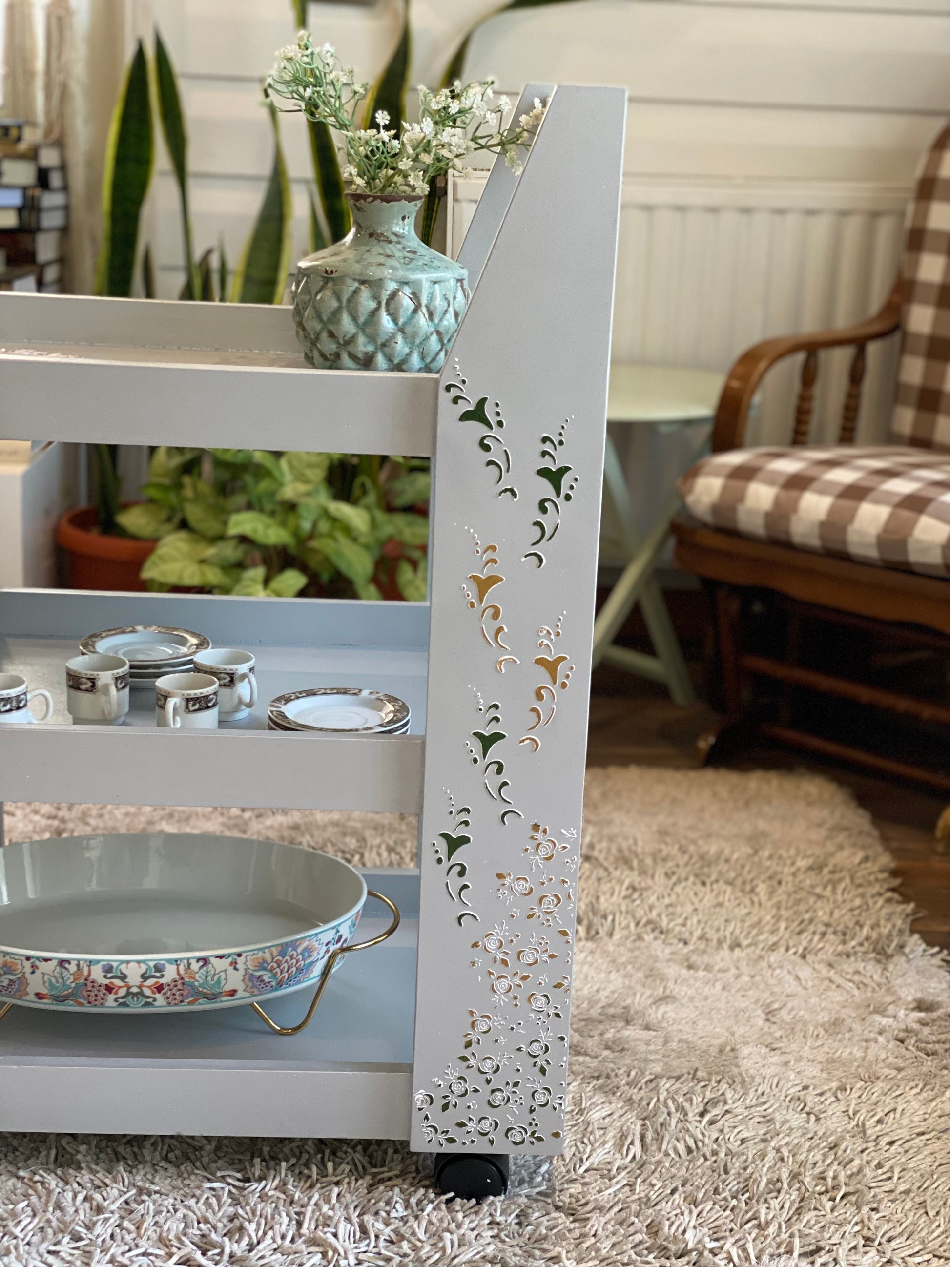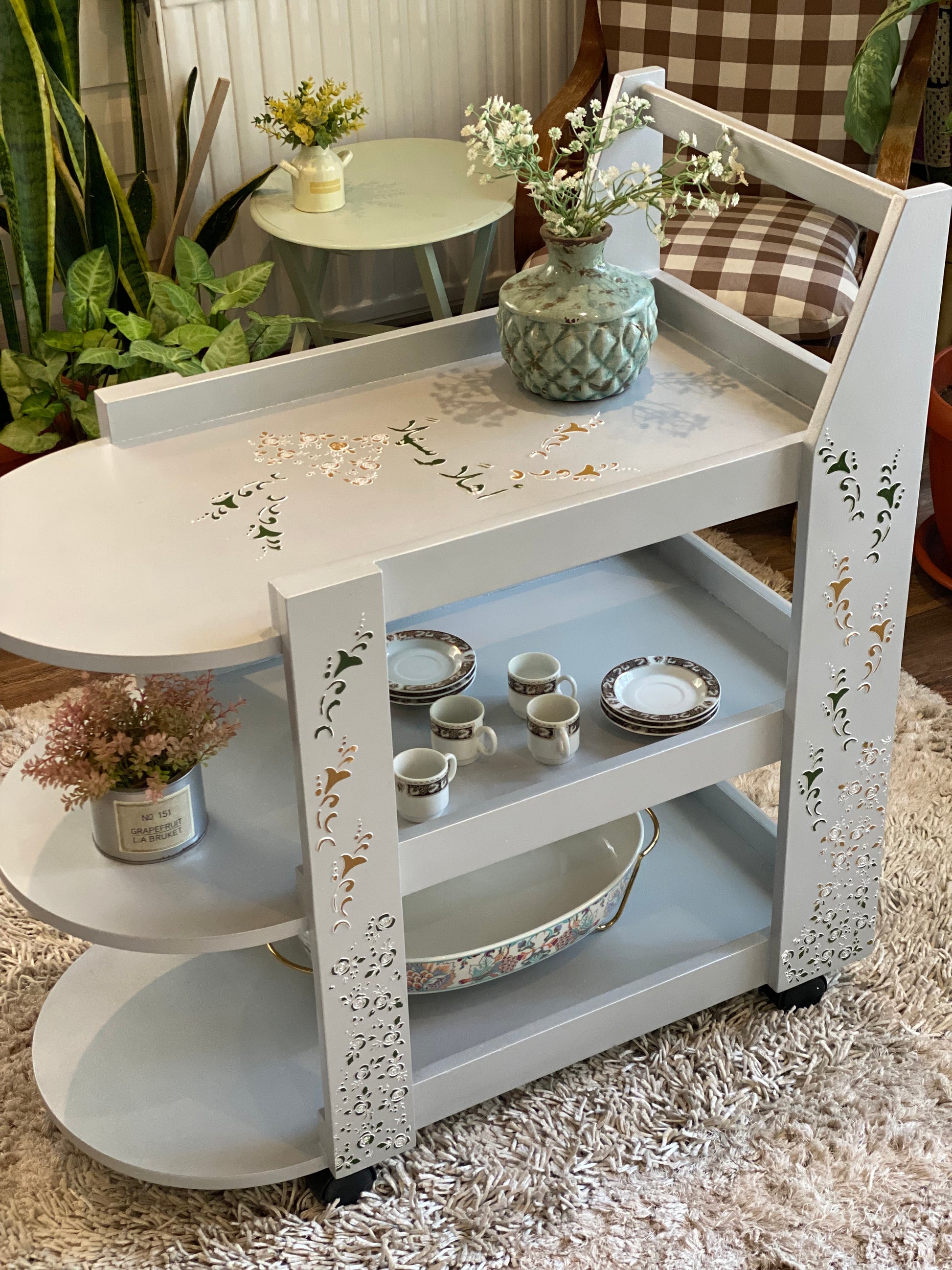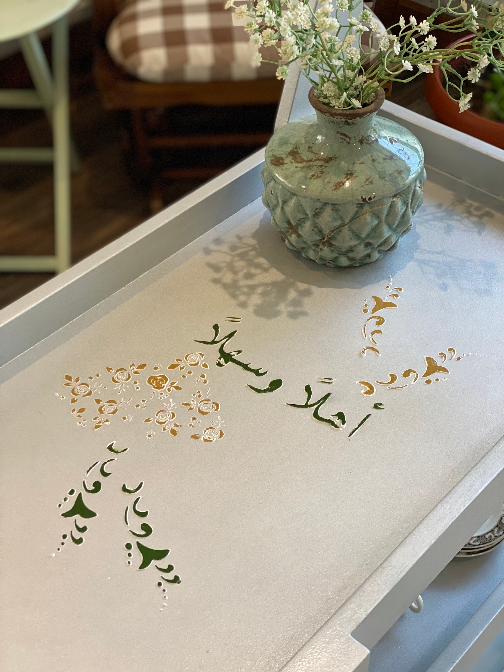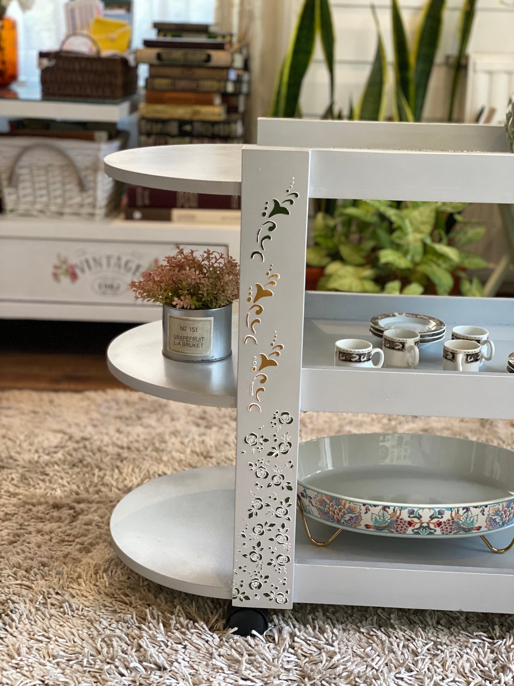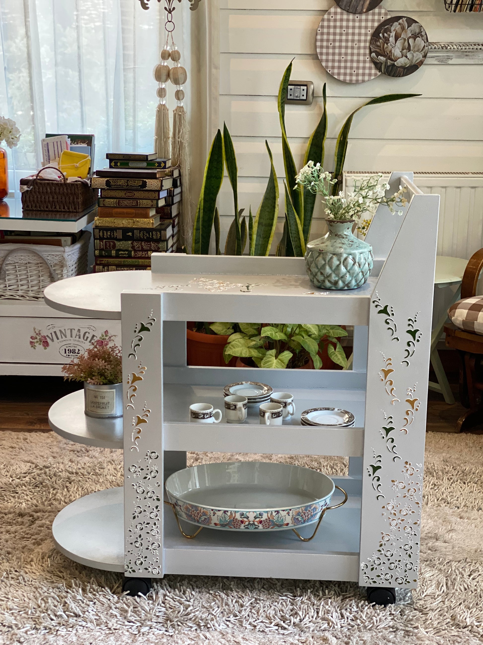 ترابيزه تقديم فضي شغل بارز زيتي في نحاسي