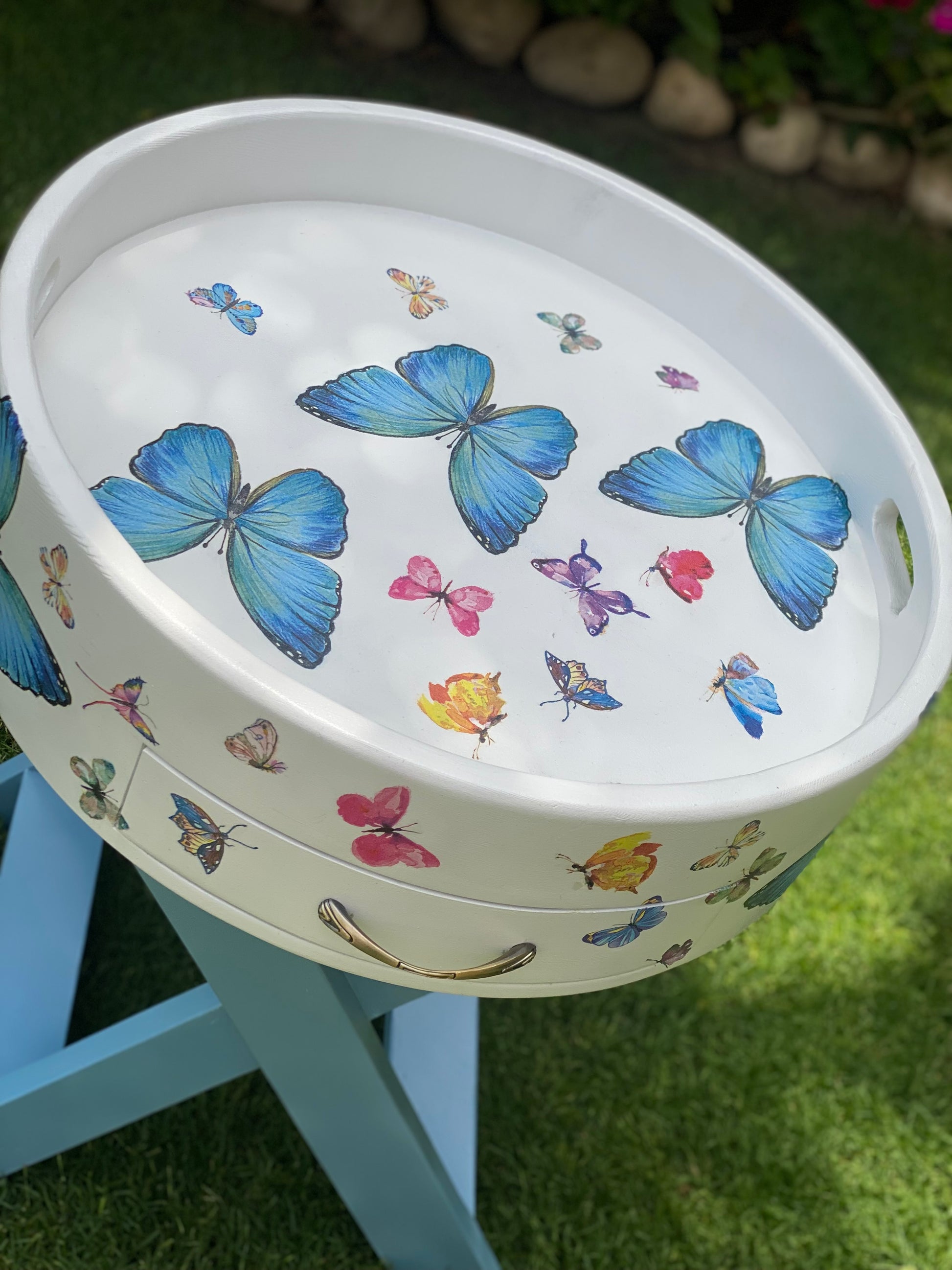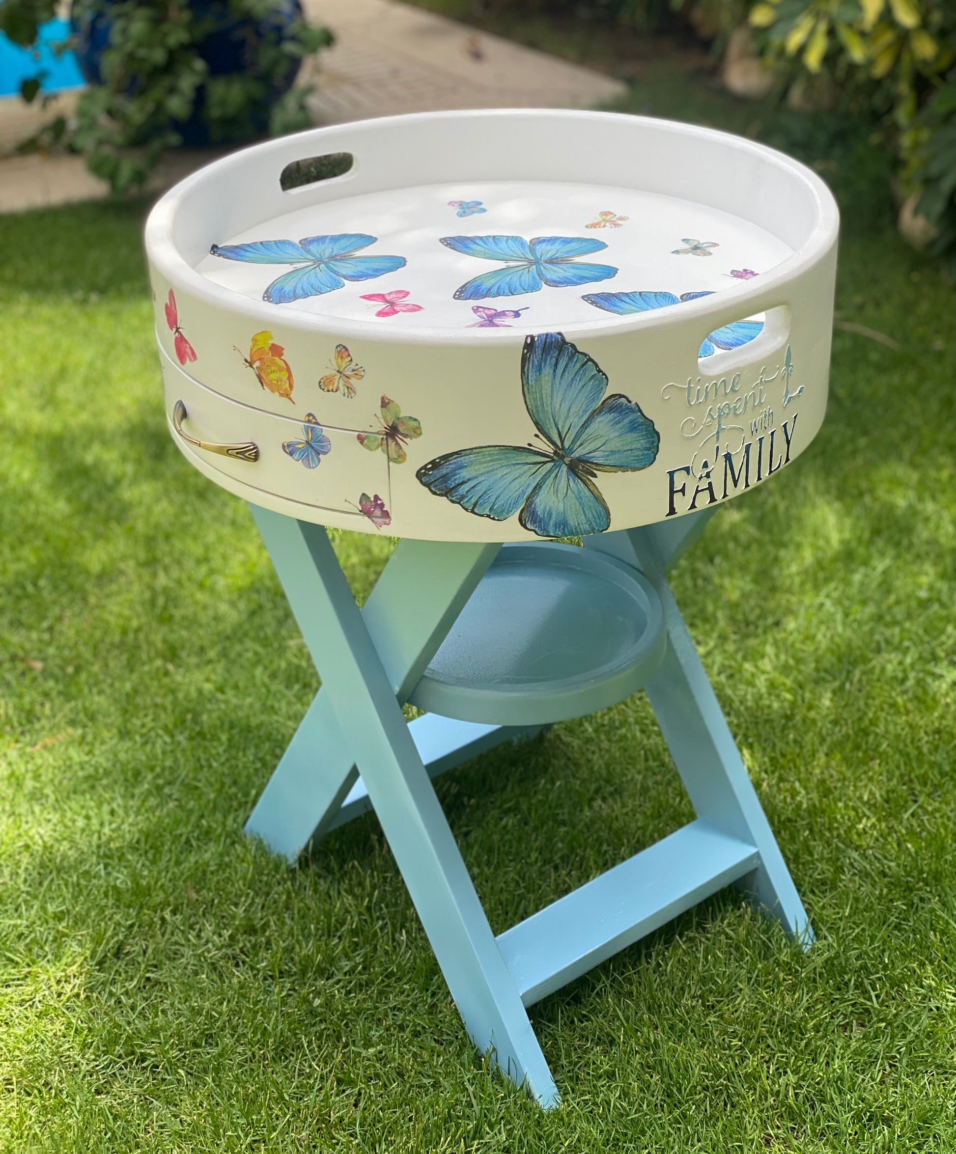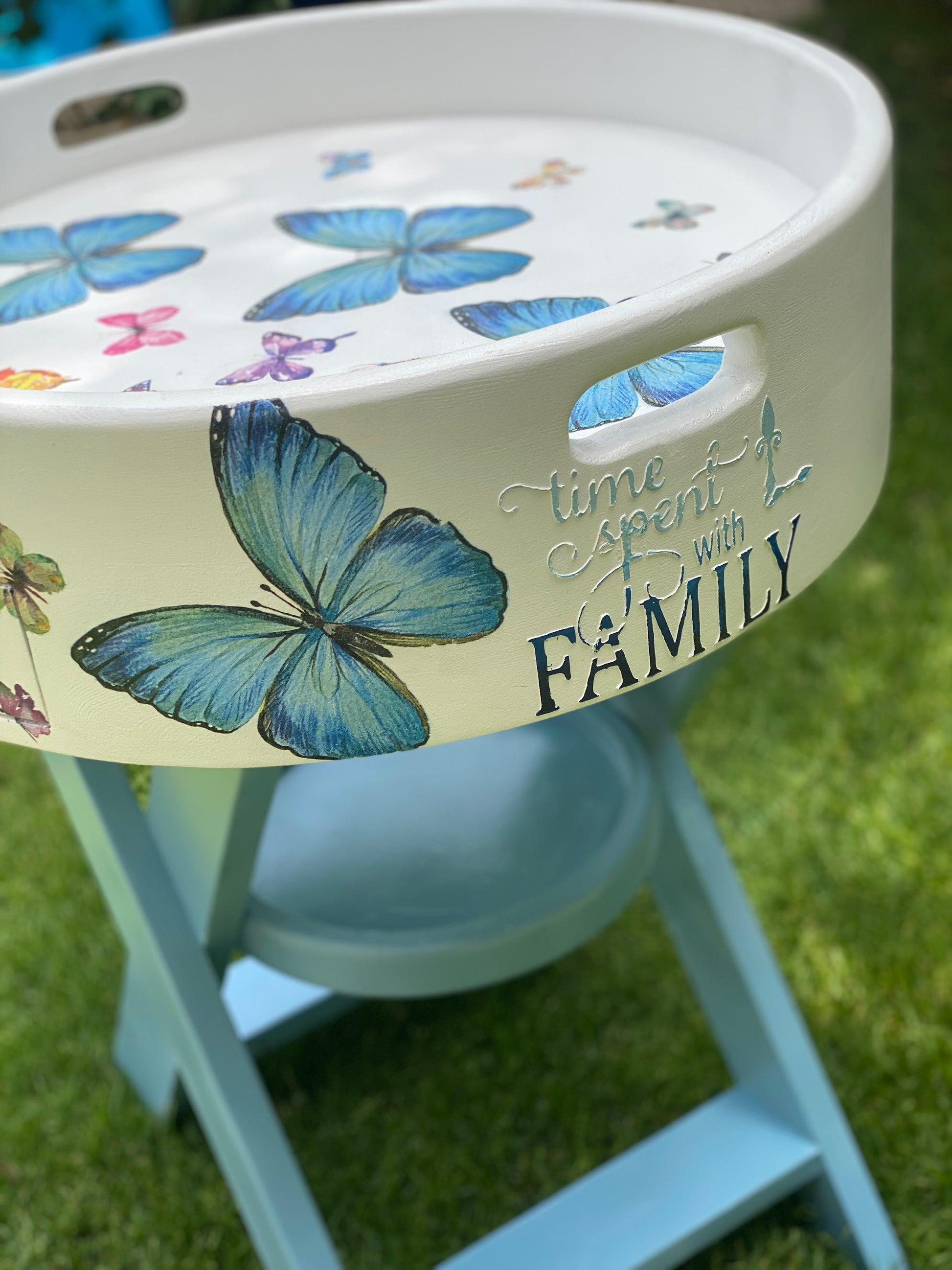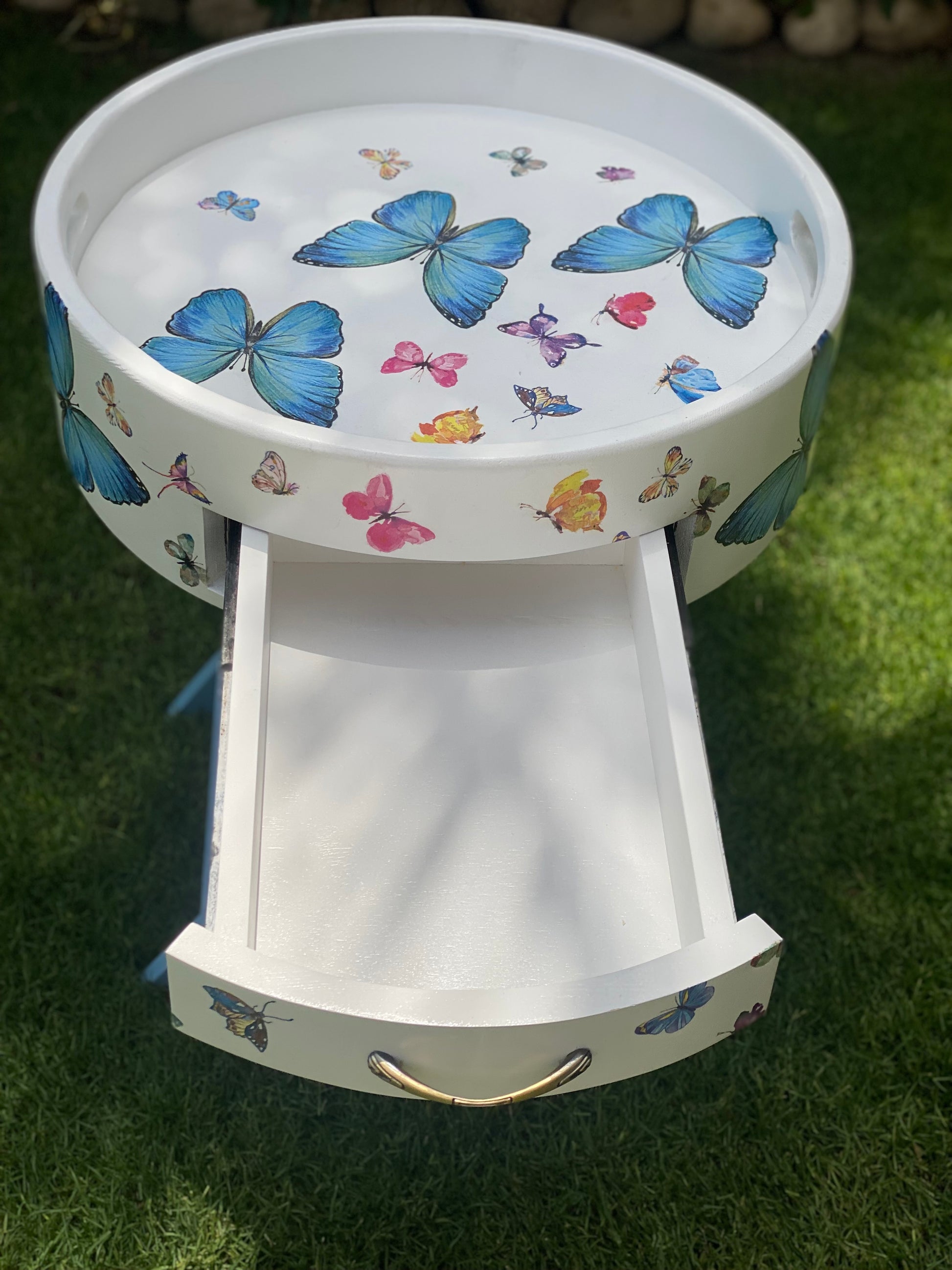 ترابيزه جانبيه اوف وايت في لبني غامق ديزاين فراشات