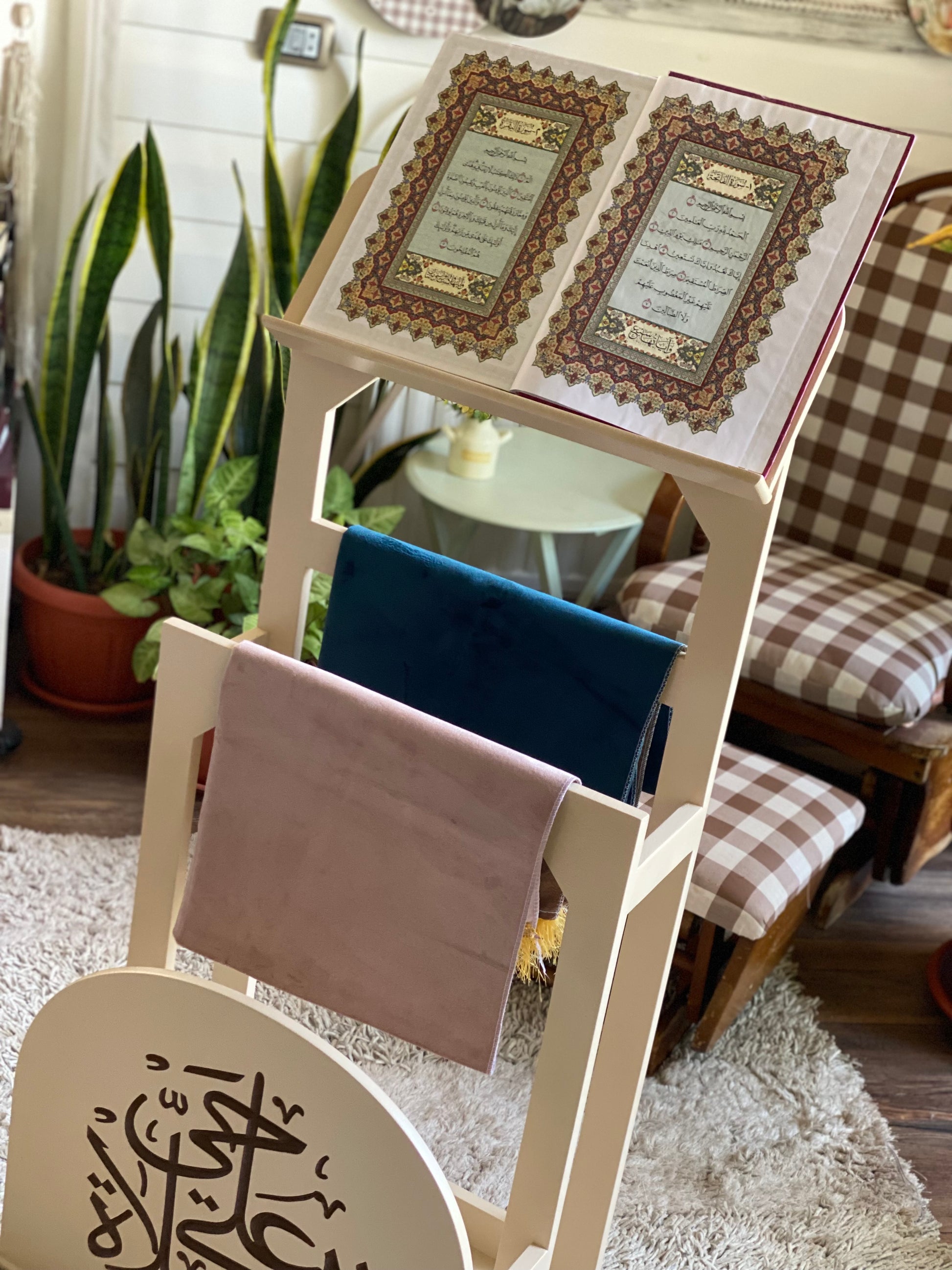 حامل سجاجيد صلاه ( وقراءه) بيچ غامق كلمه حي علي الصلاه بالبني