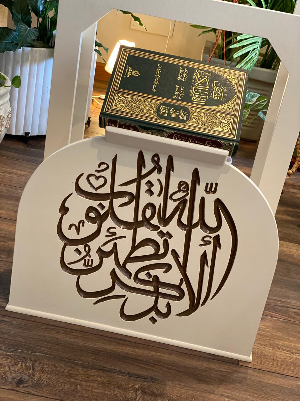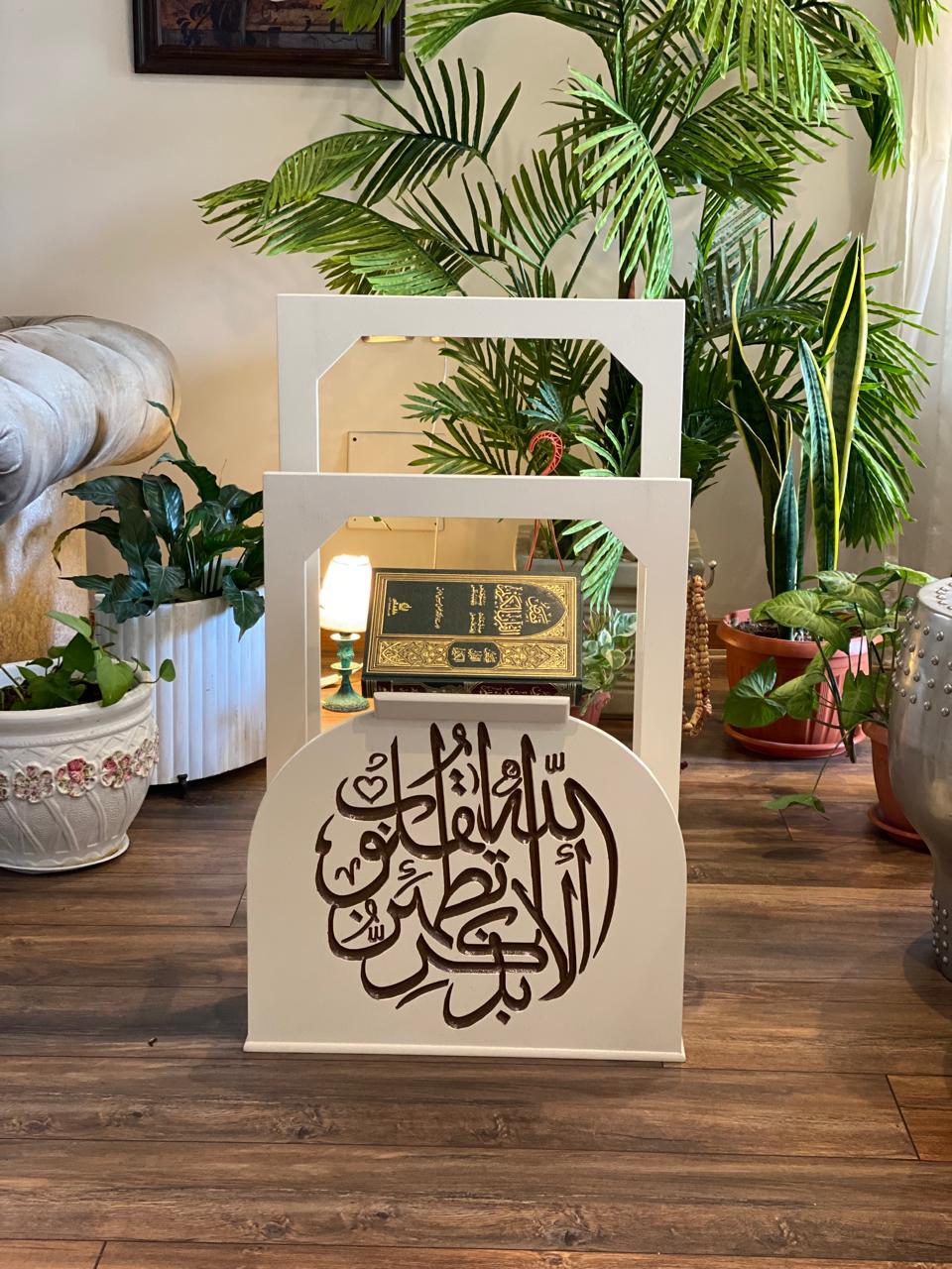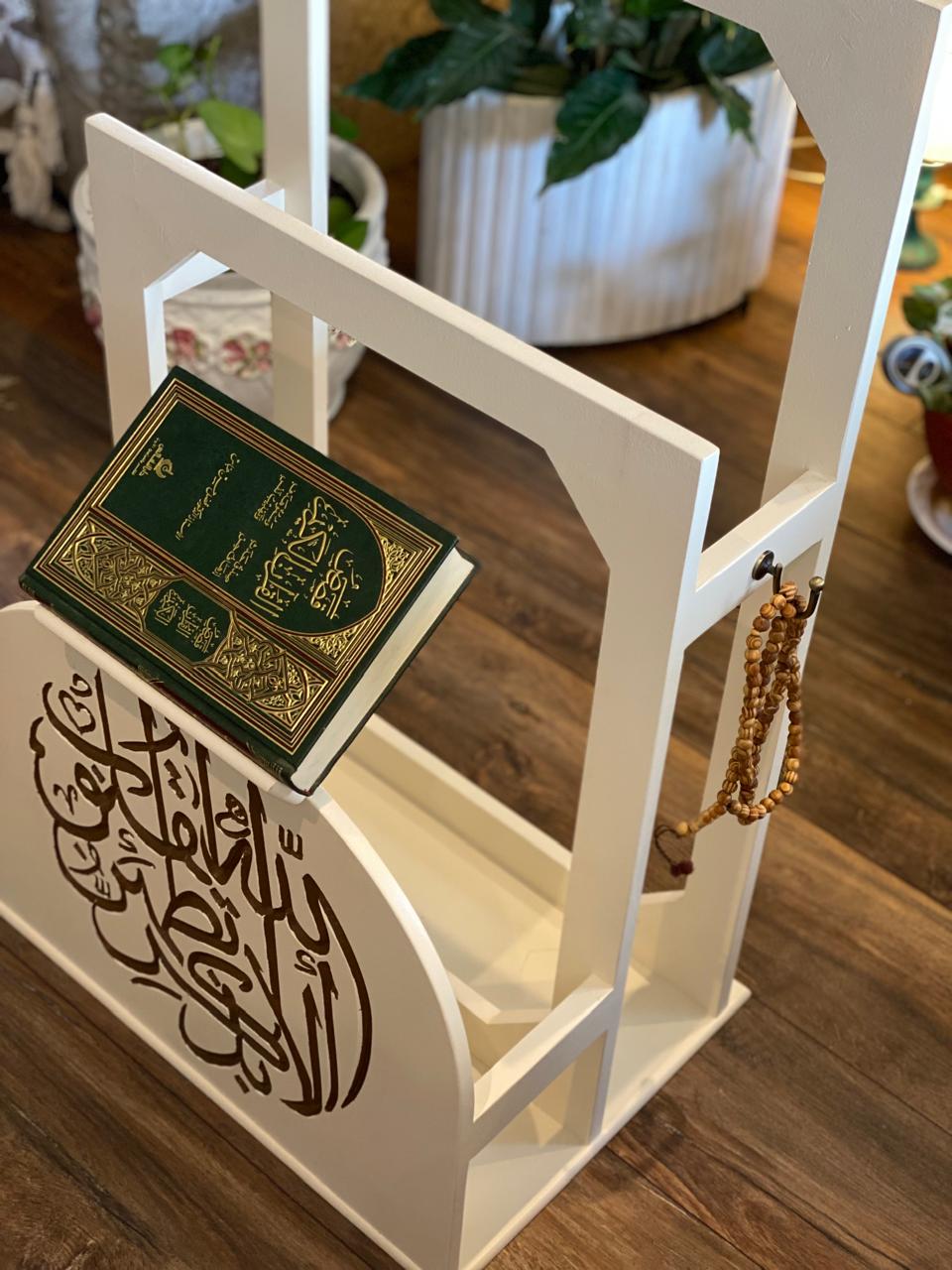 حامل سجاجيد صلاه ومصحف بيچ ساده مع عليقه سبح كلمه الايذكر الله تطمئن القلوب بالبني