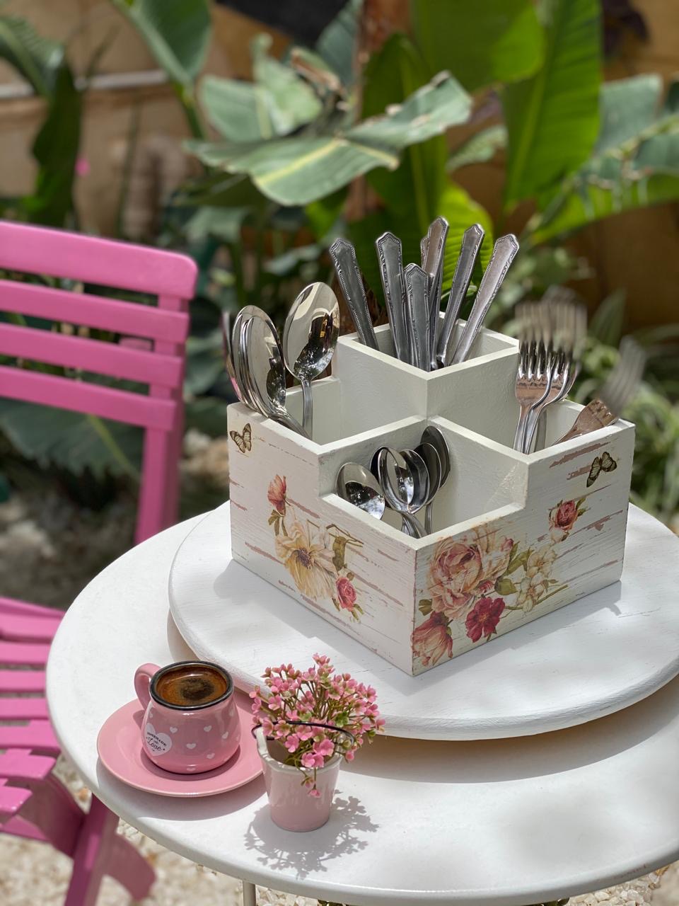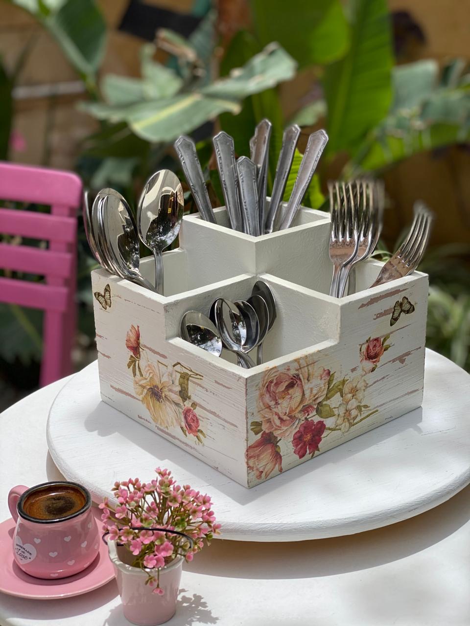 حامل شوك مربع اوف وايت متجرح ورده نور