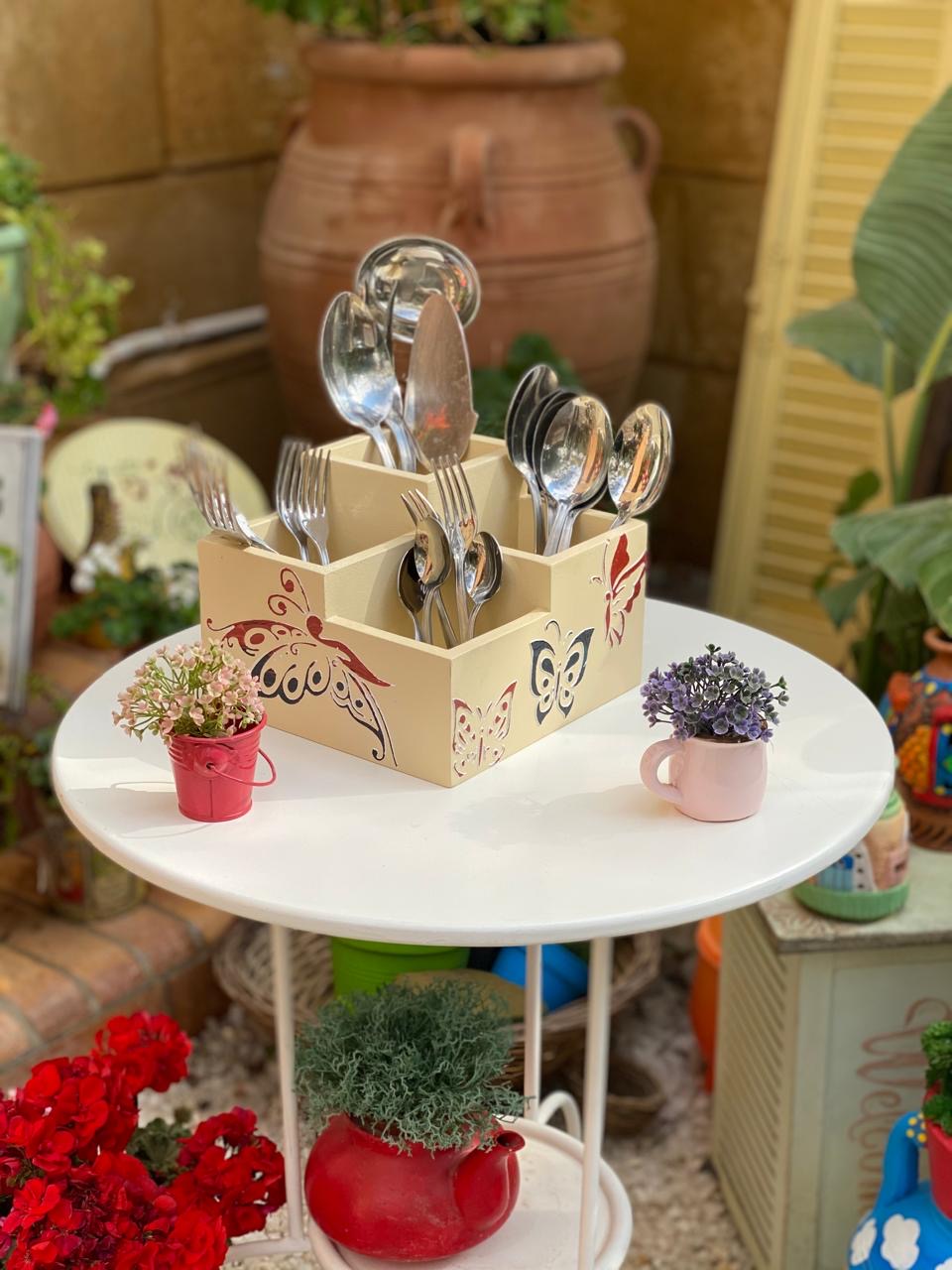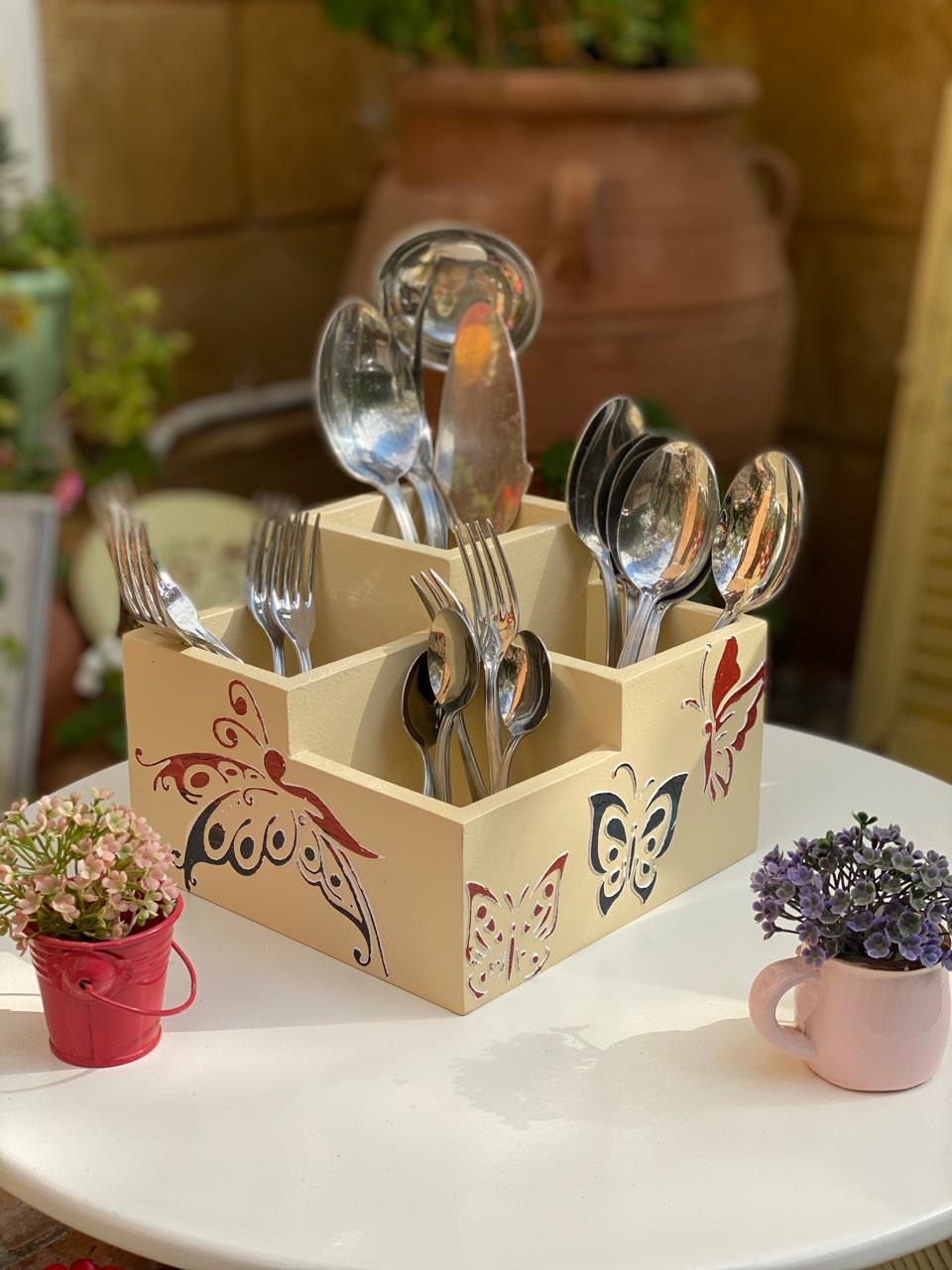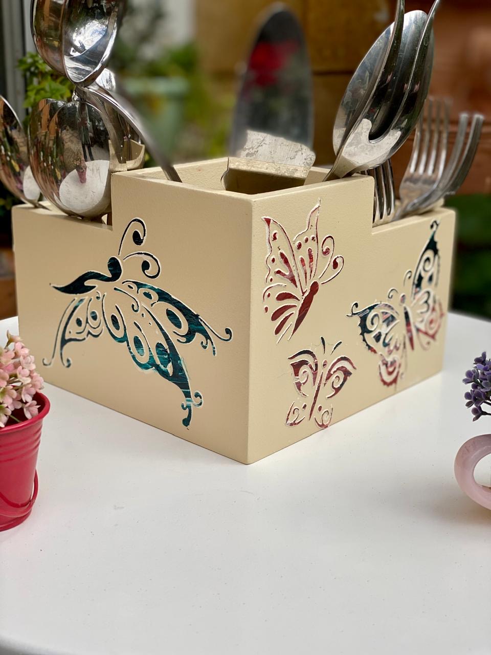 حامل شوك مربع بيج غامق فراشات بارزه