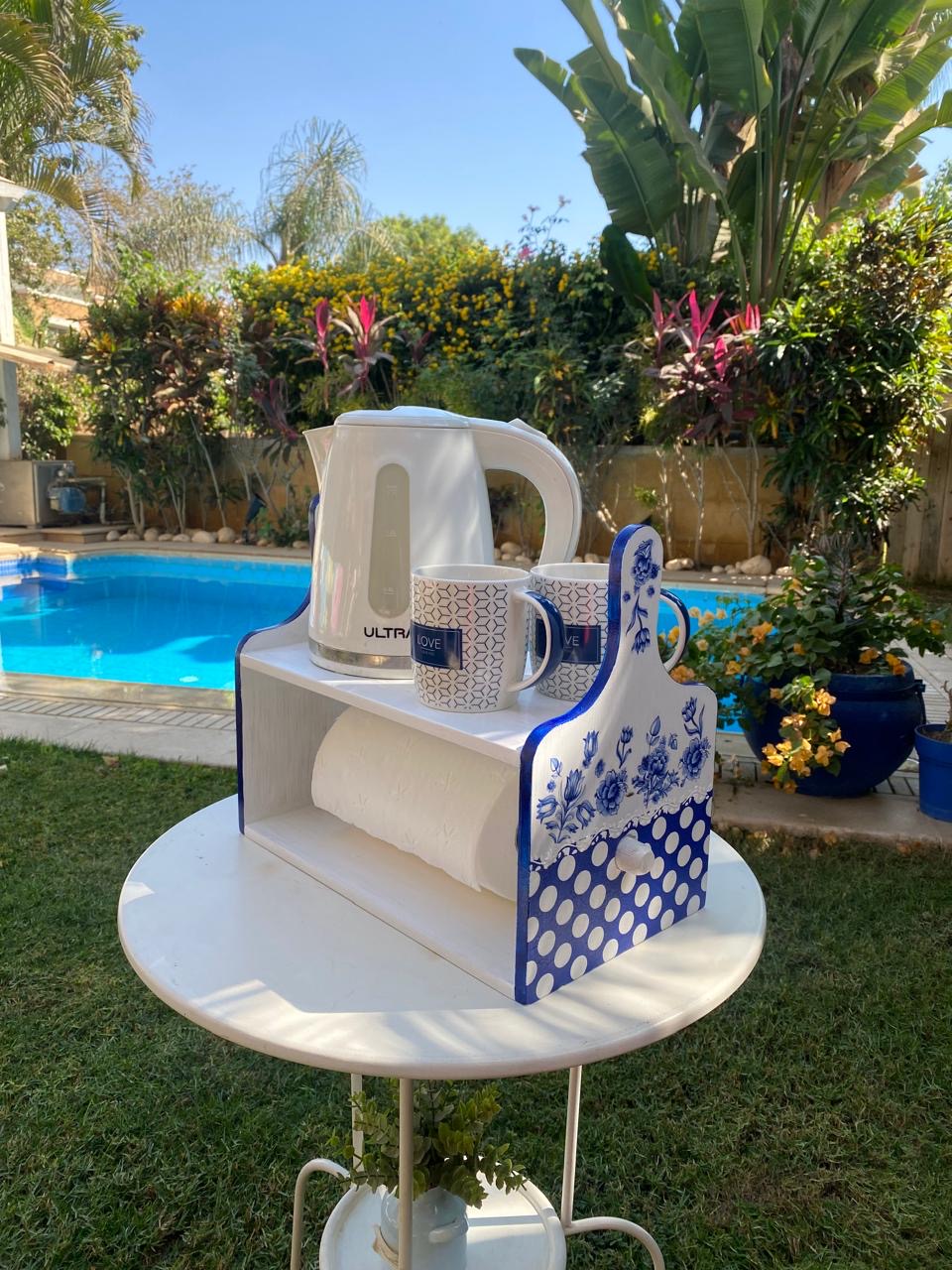 حامل مناديل اوف وايت ورده اشراق اطراف زرقاء