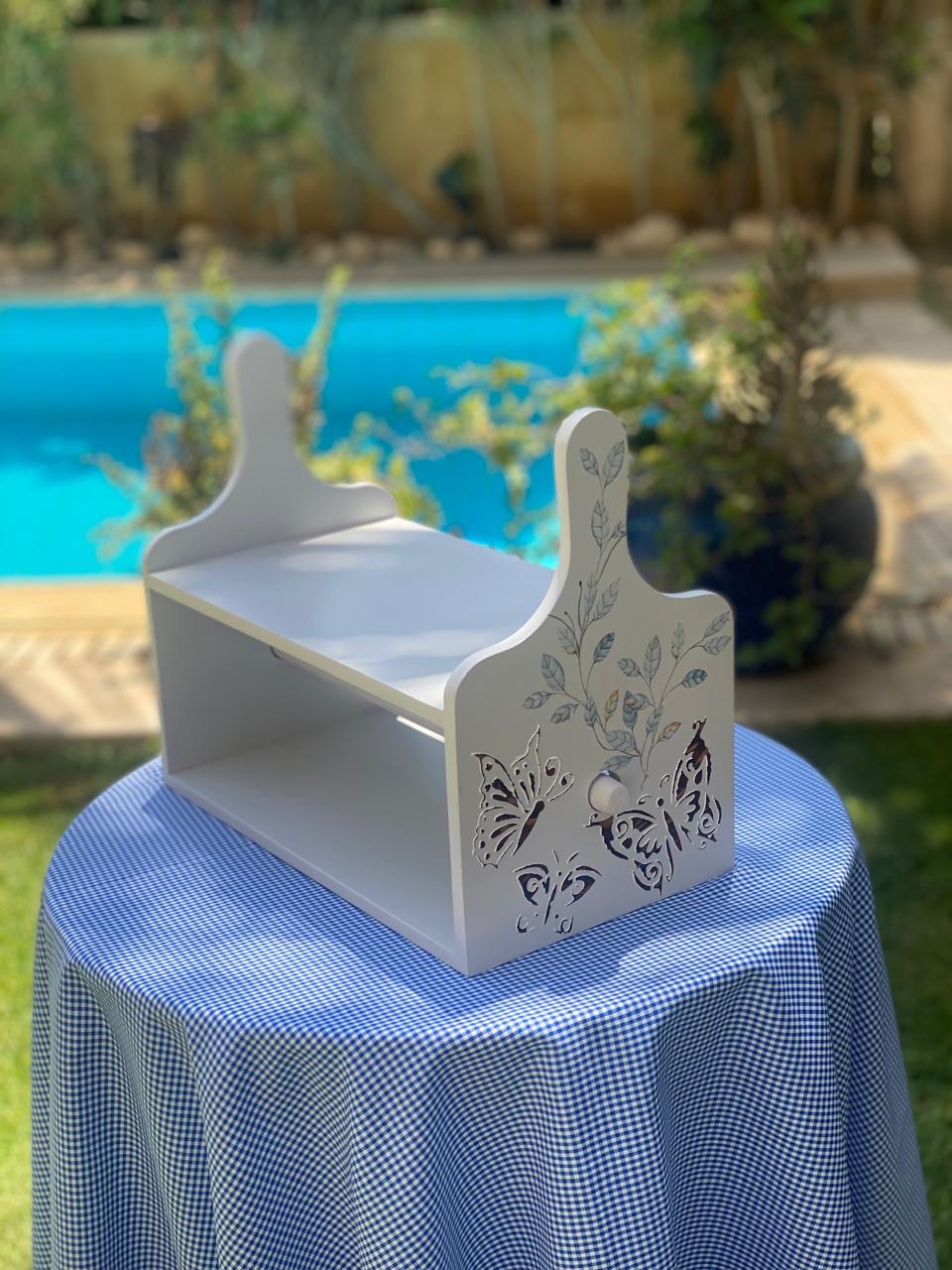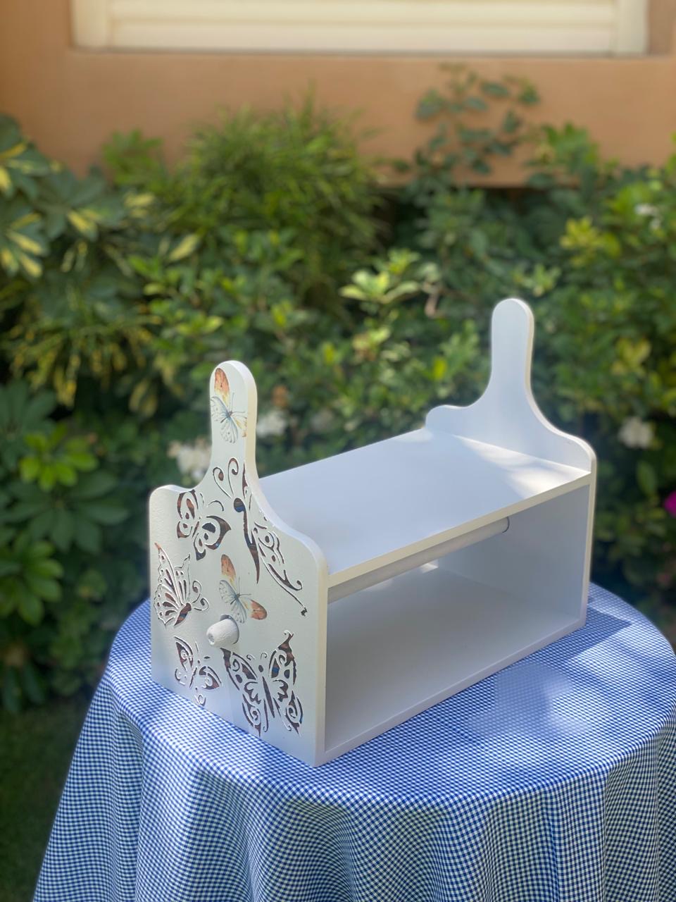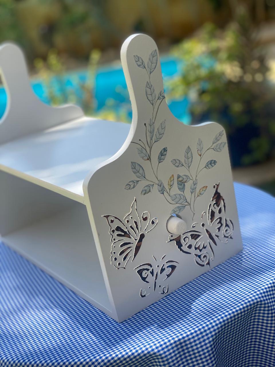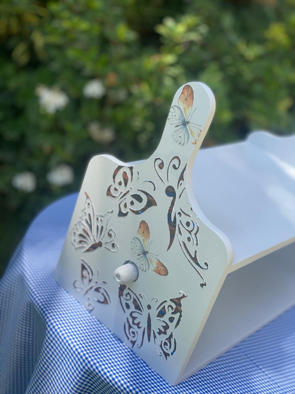 حامل مناديل رمادي فاتح فراشات بارزه مع فروع شجر لبني فاتح