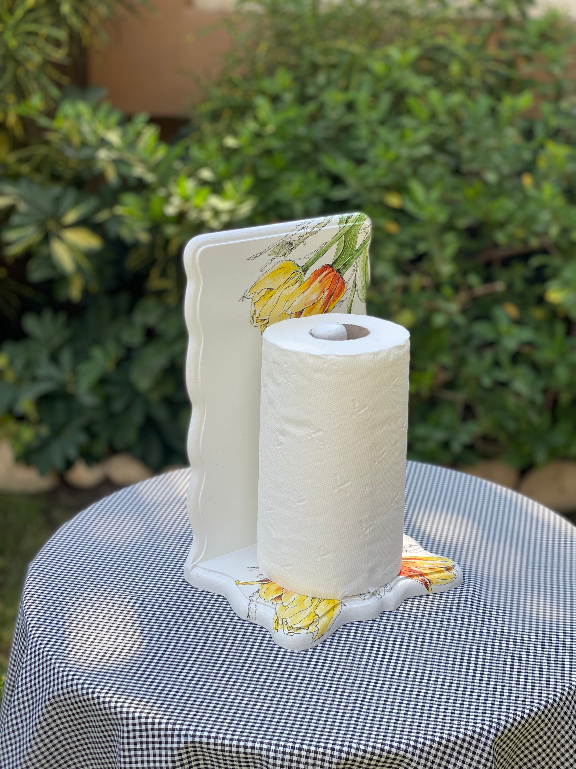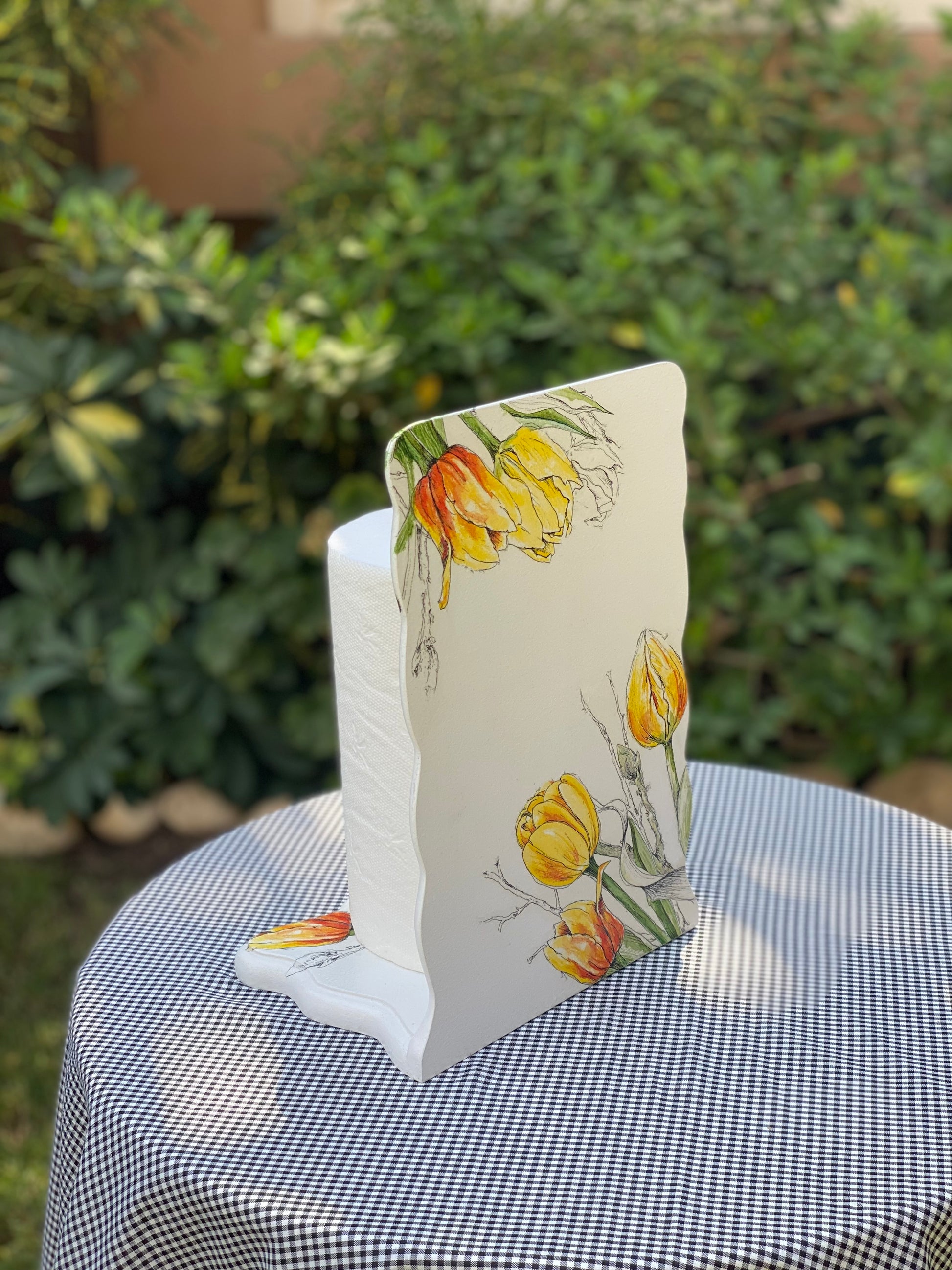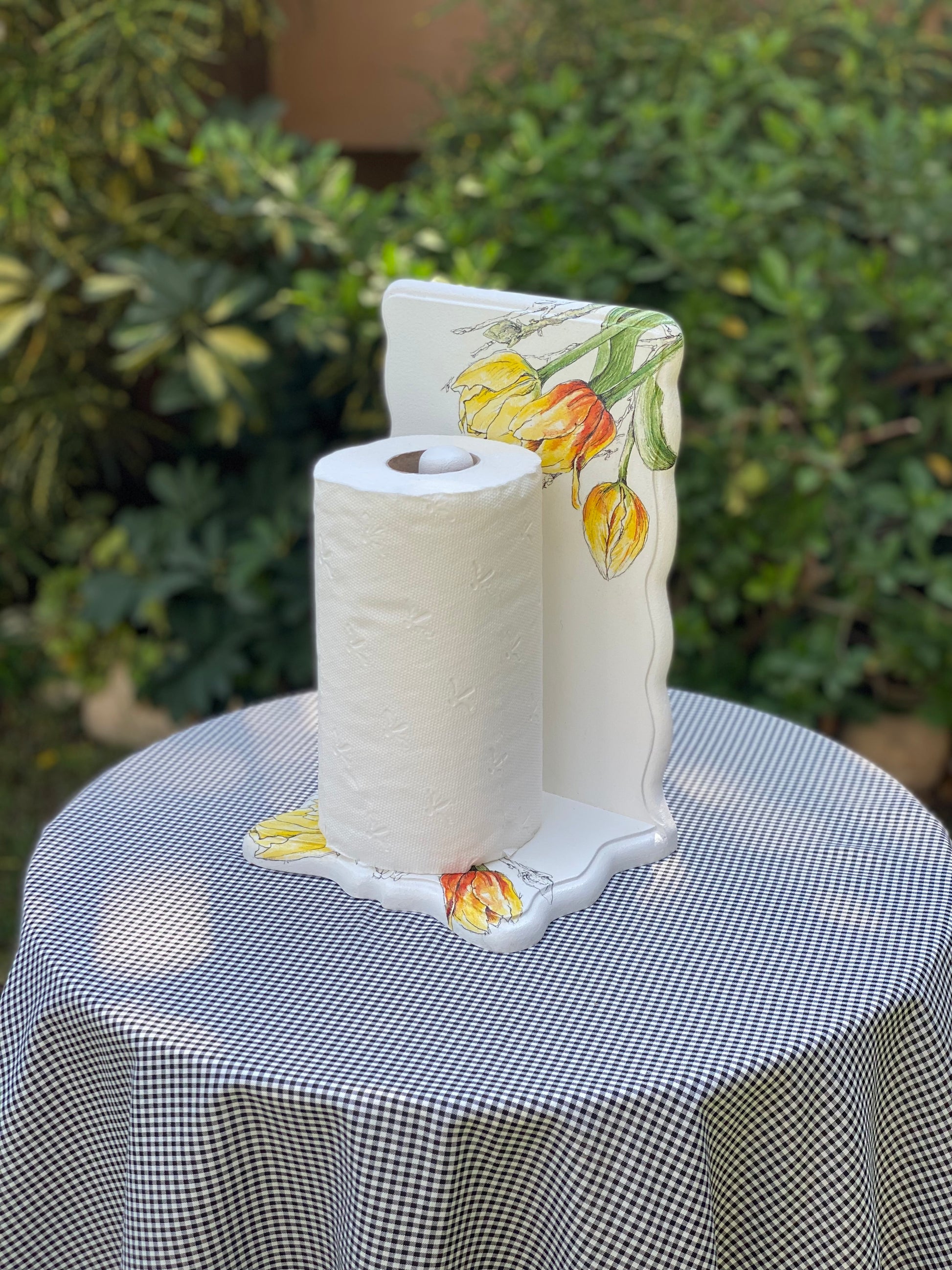 حامل مناديل مطبخ اوف وايت ورده تيوليب اصفر