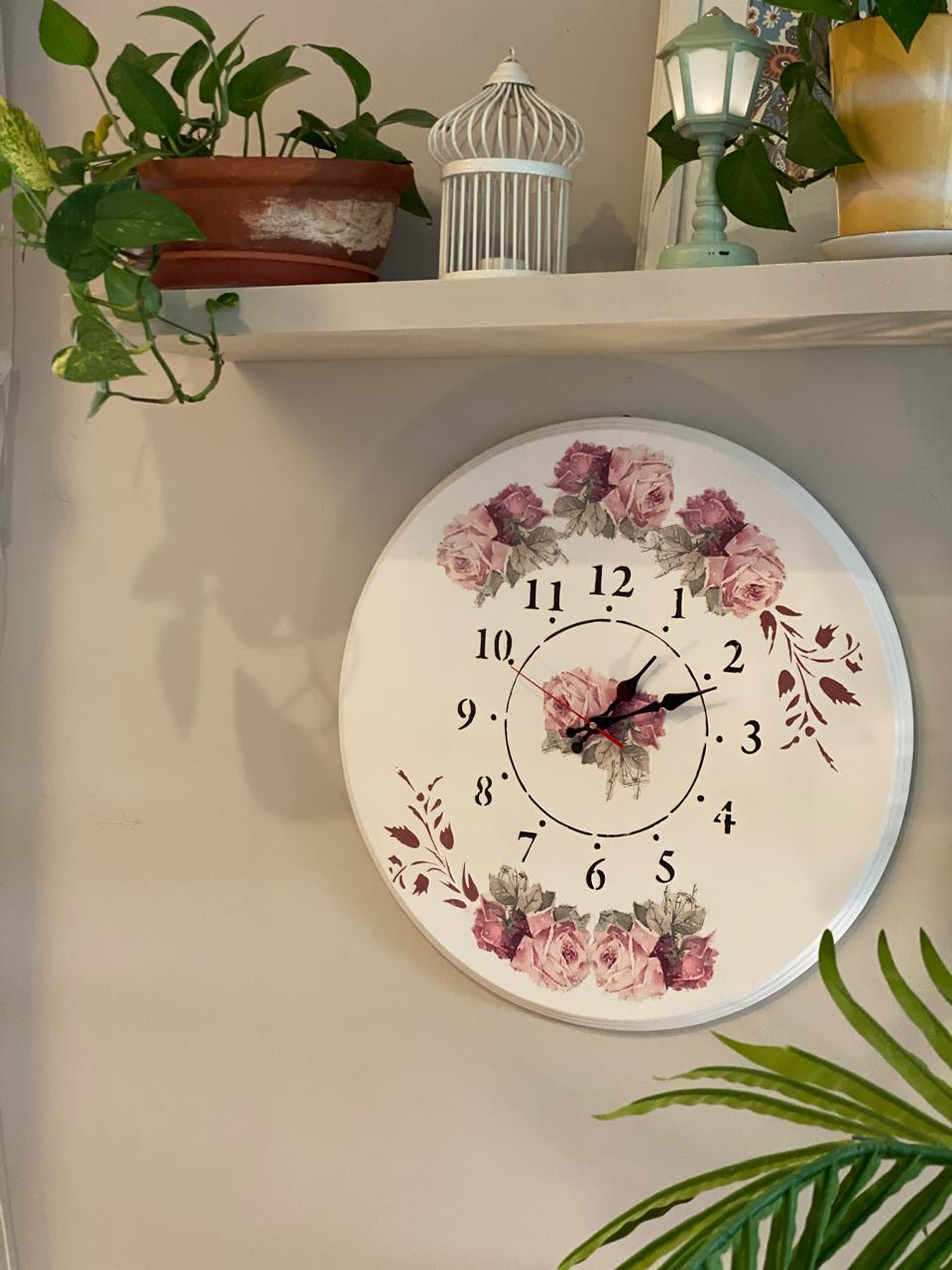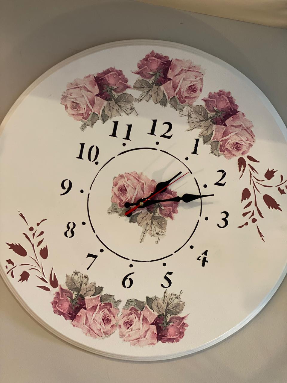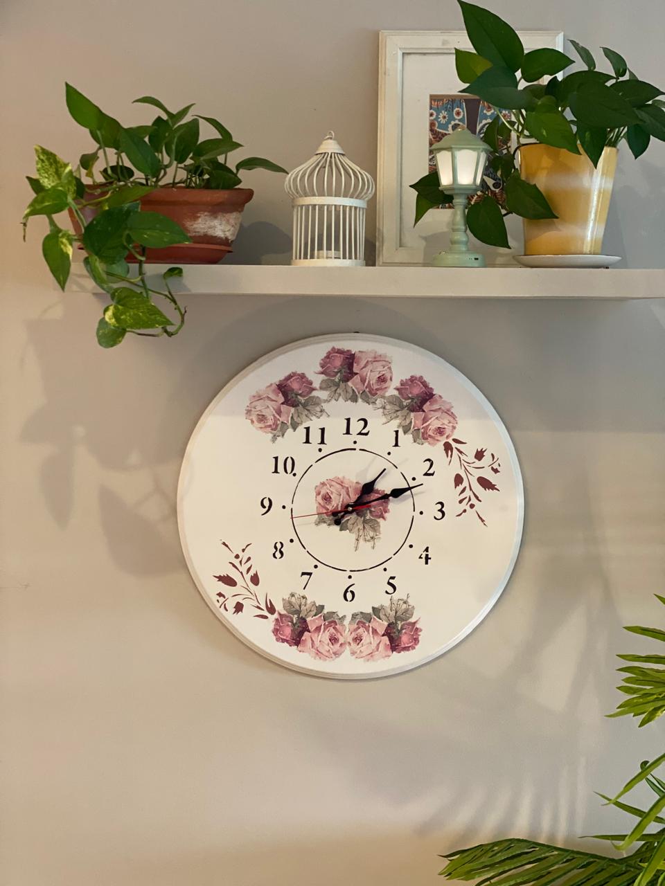 ساعه حائط ارقام عربي اوف وايت ورده چورا
