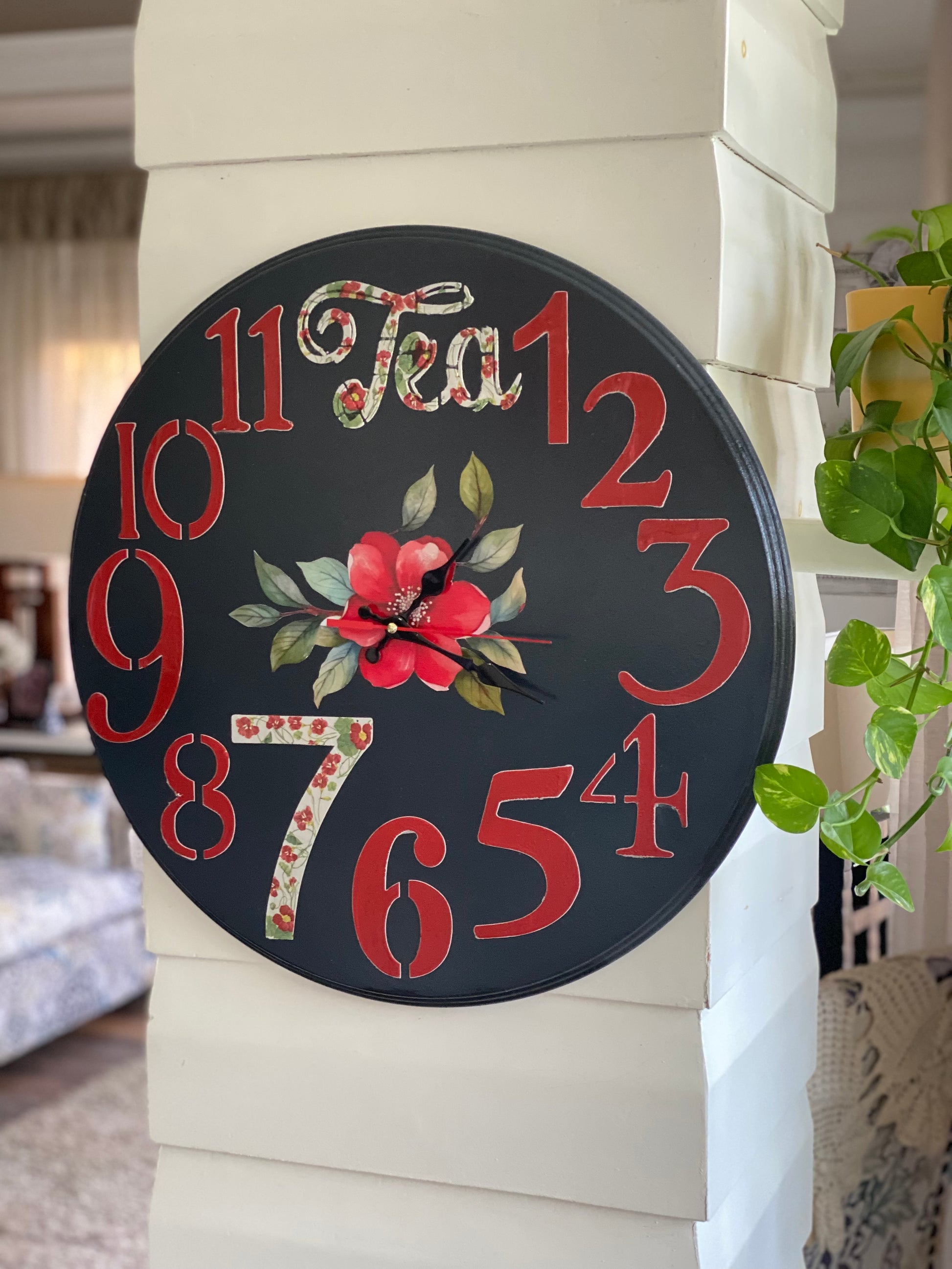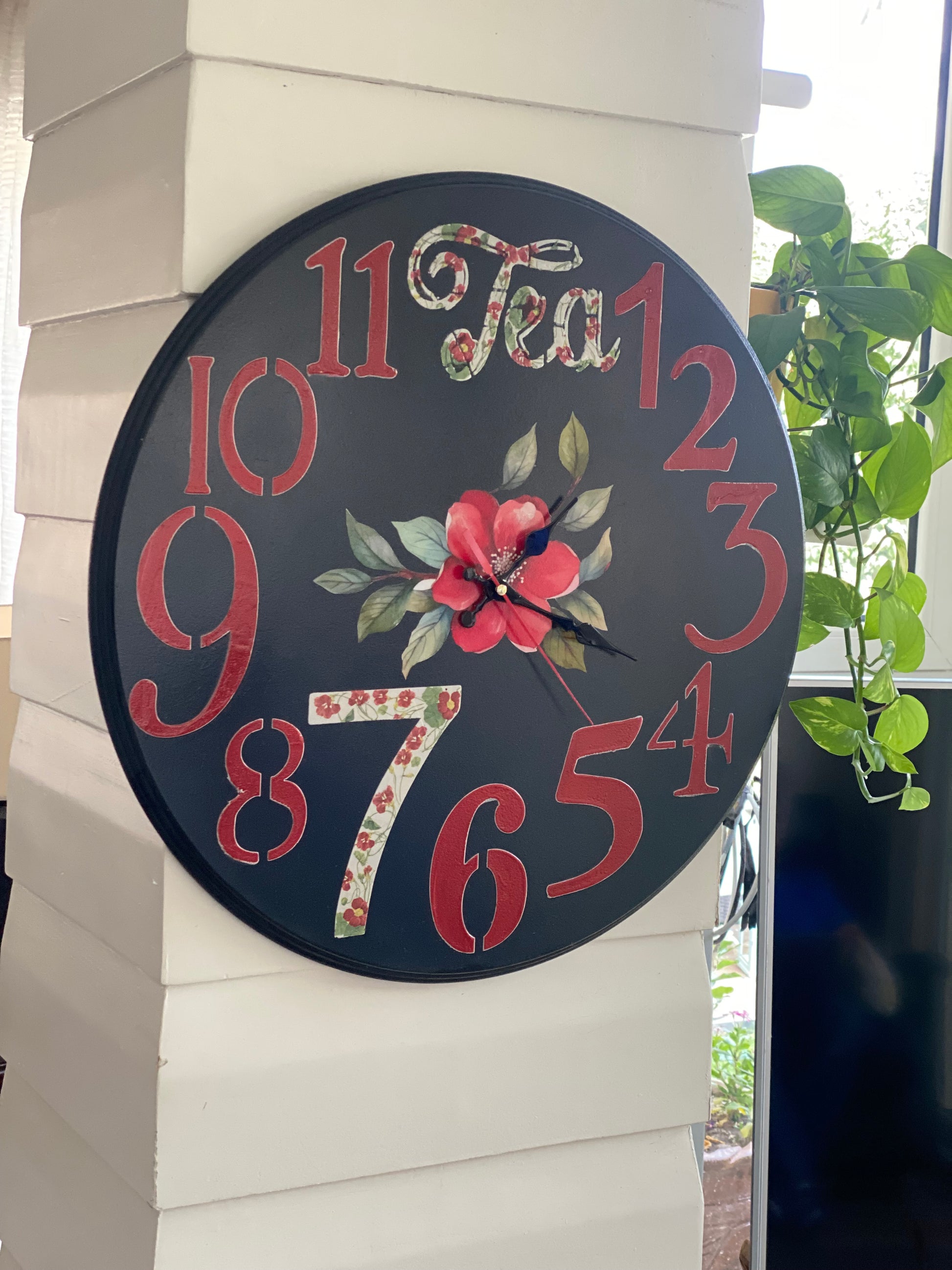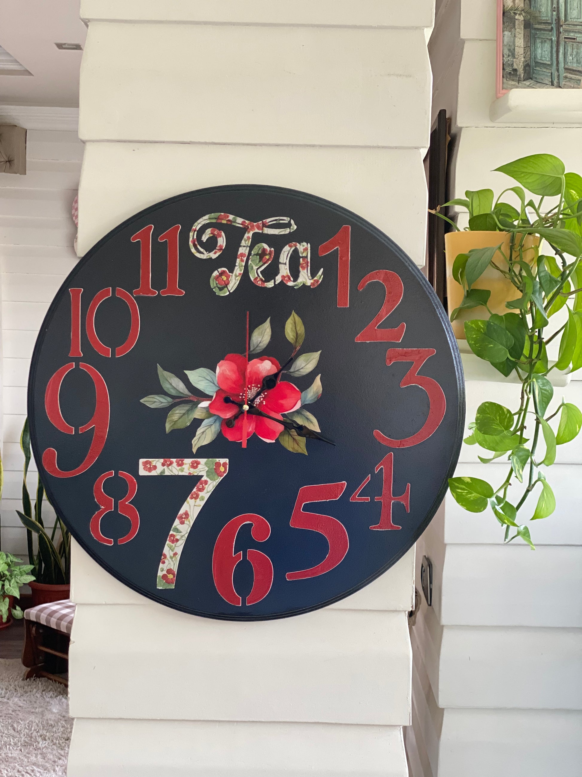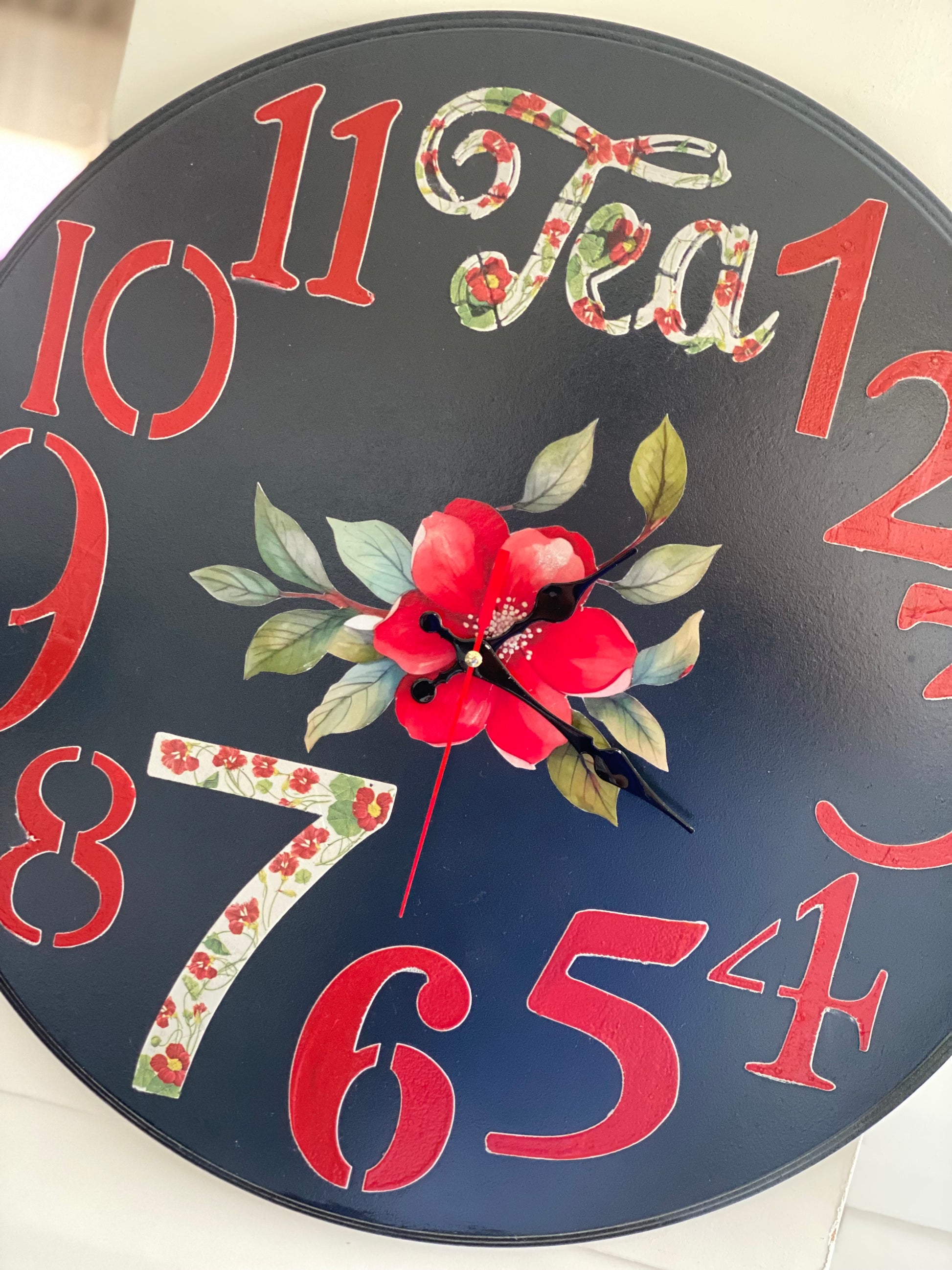 ساعه حائط اسود ورد احمر