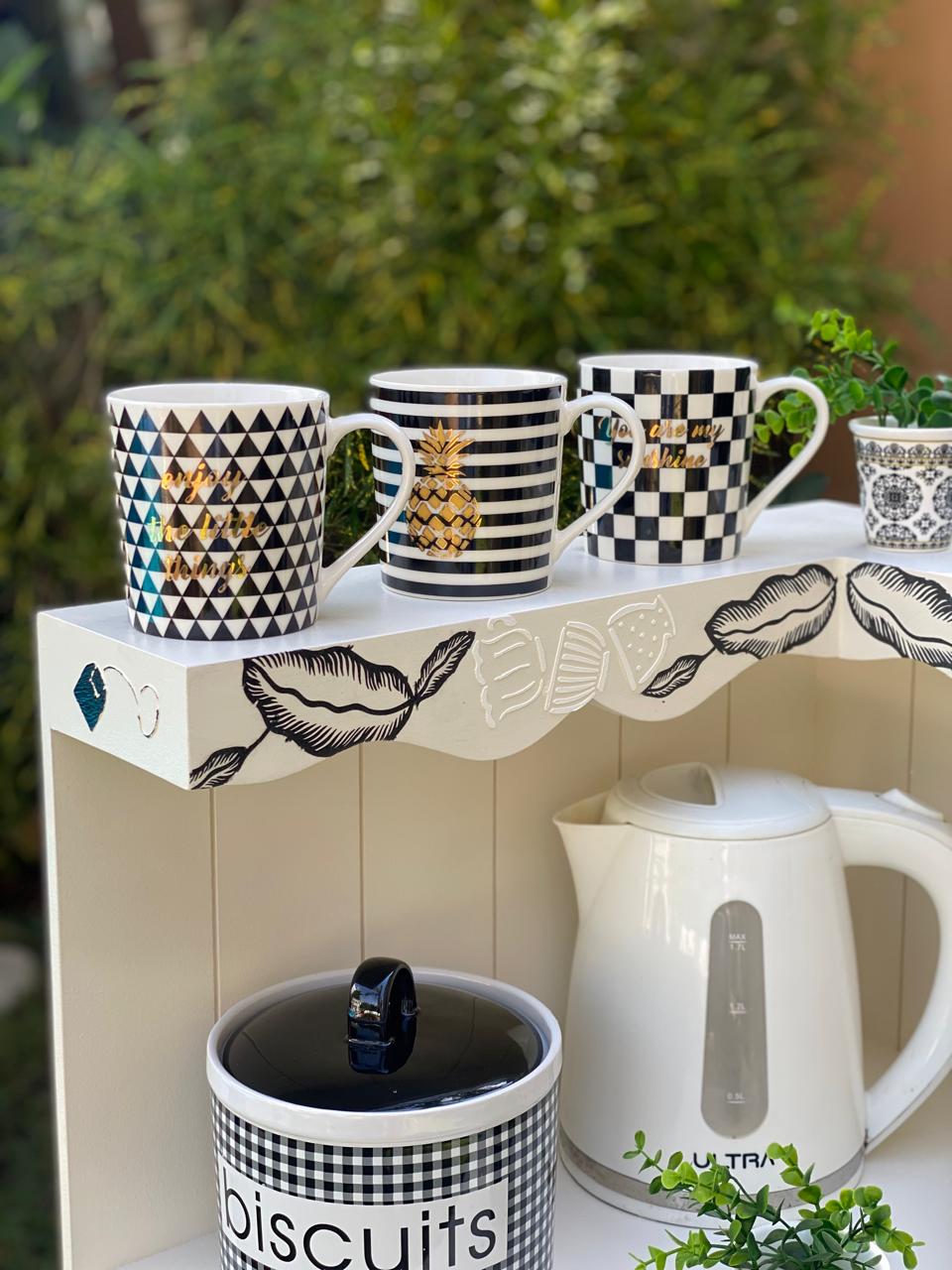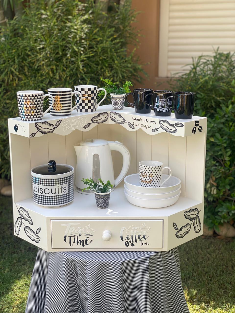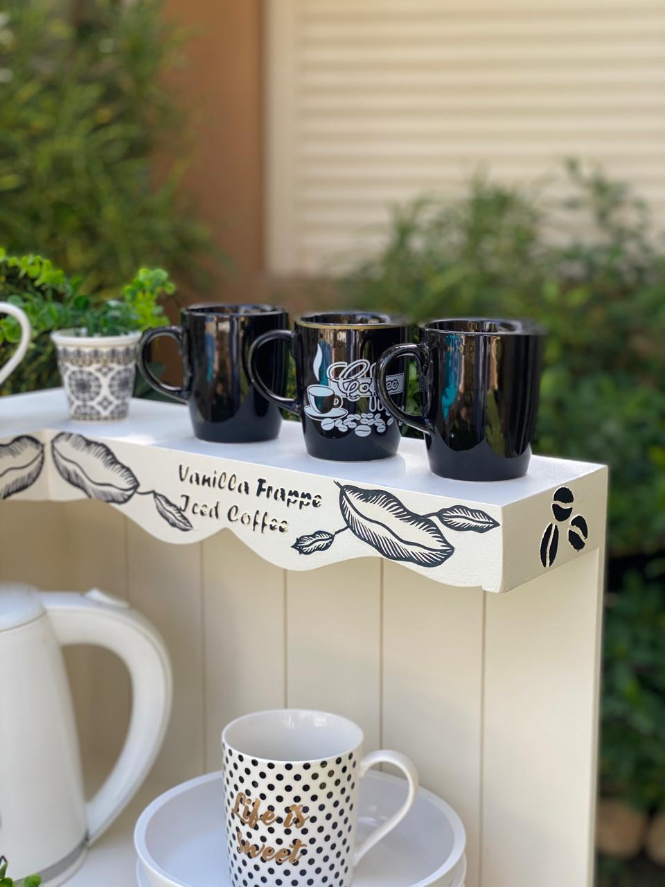 كوفي كورنر زاويه قابل للتعليق بيج ورق شجر اسود