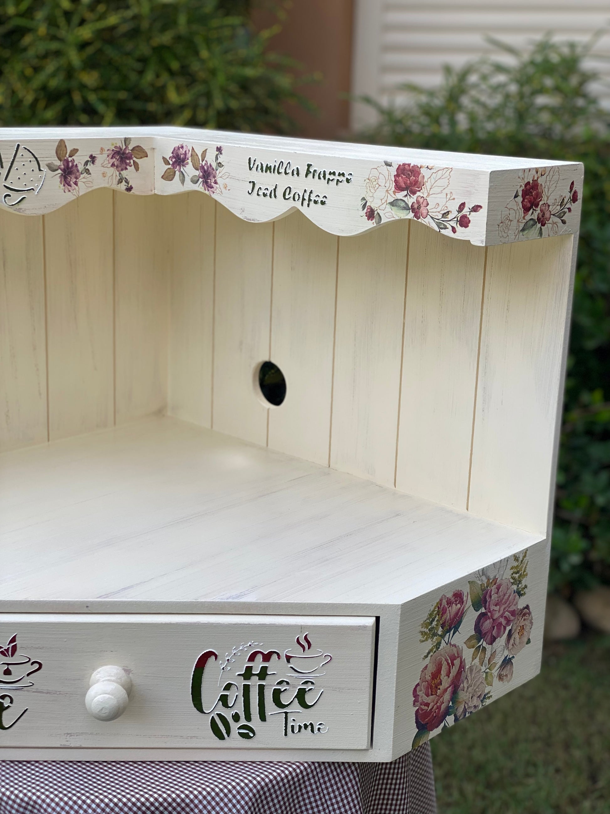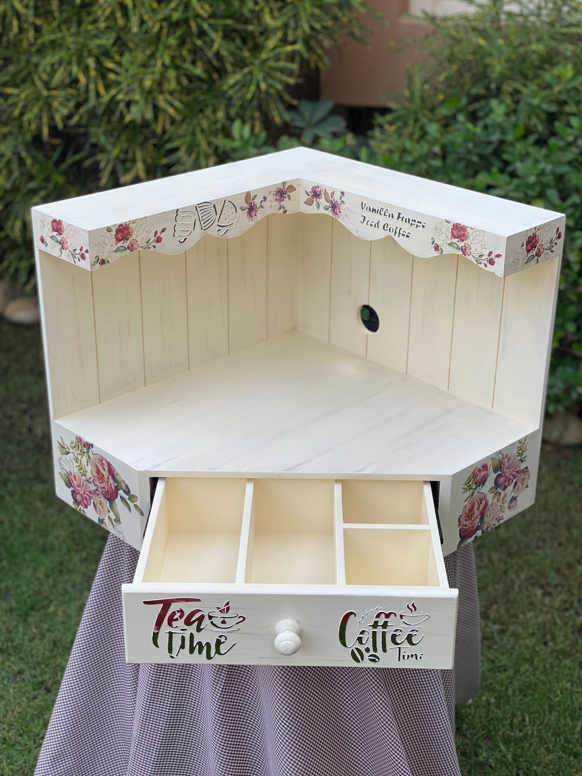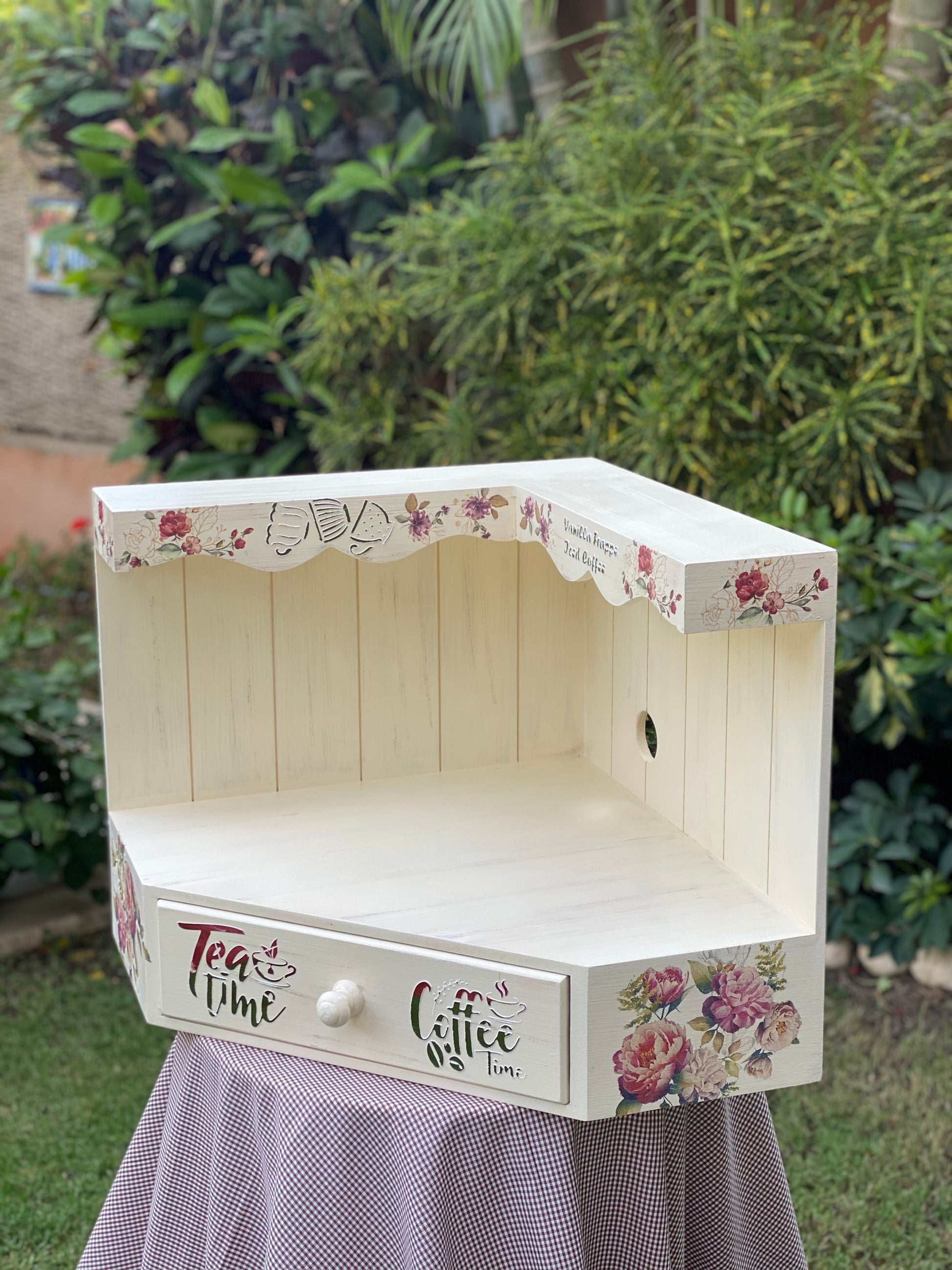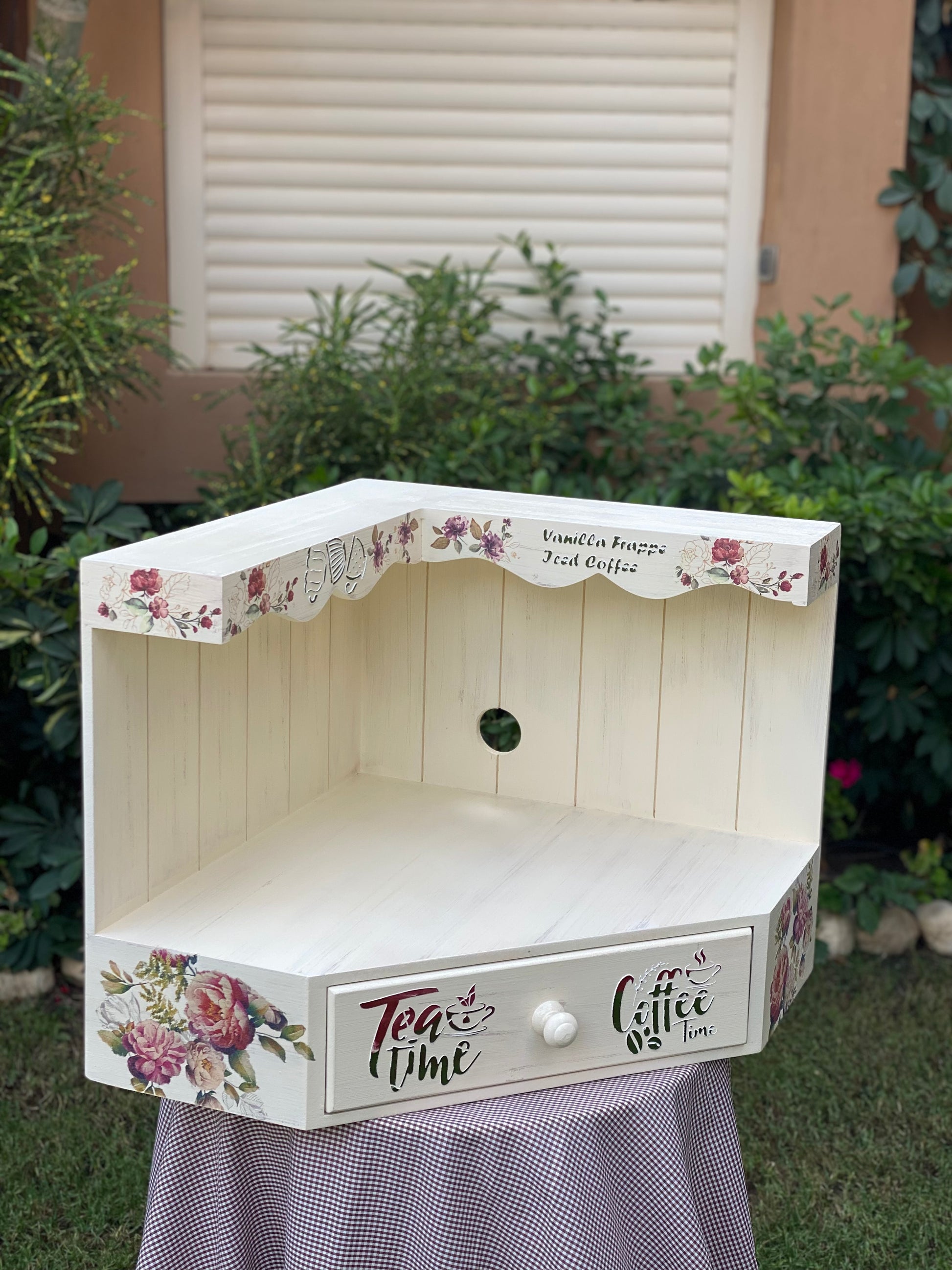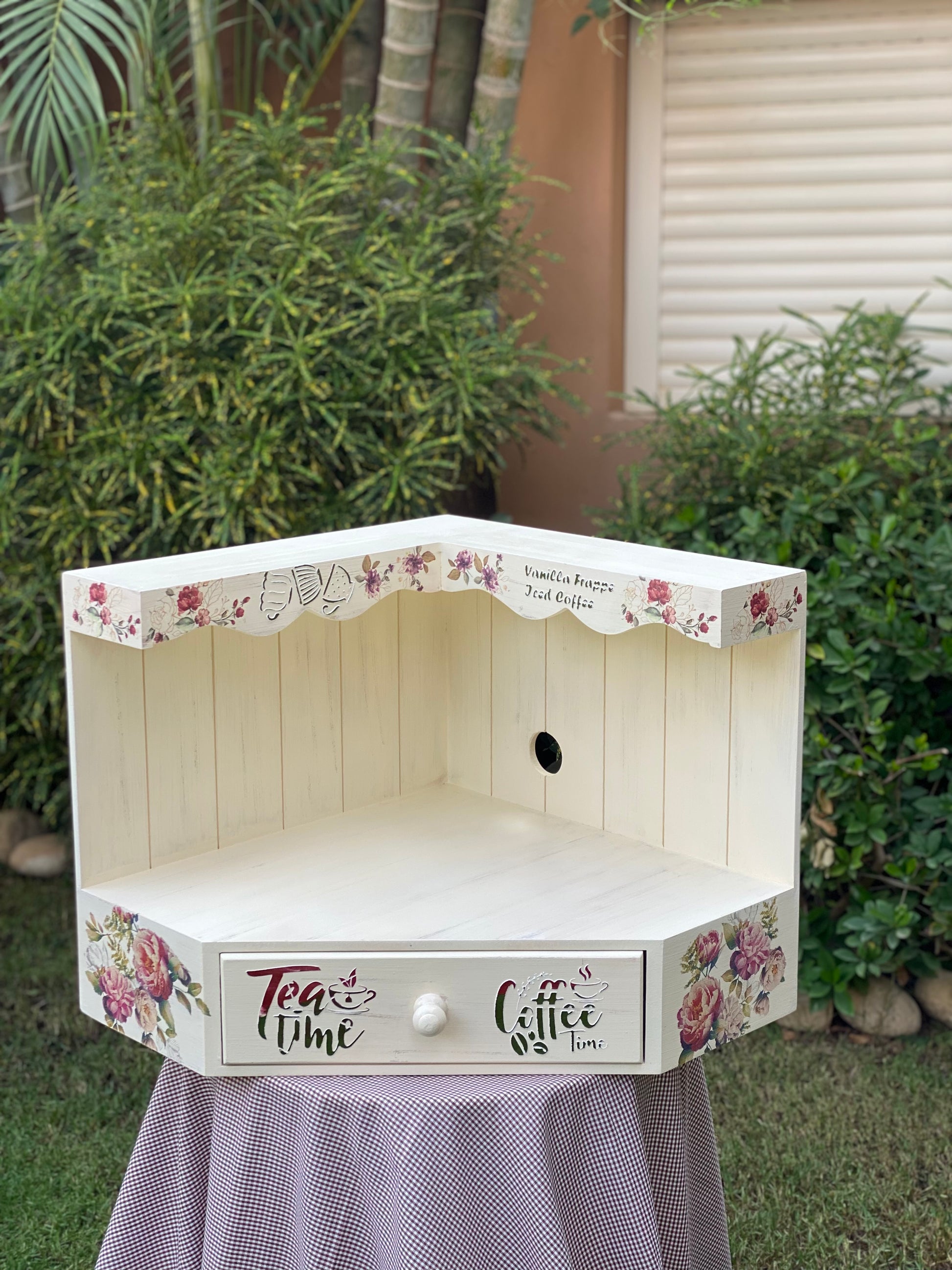 كوفي كورنر زاويه قابل للتعليق بيج متجرح ورده جميله