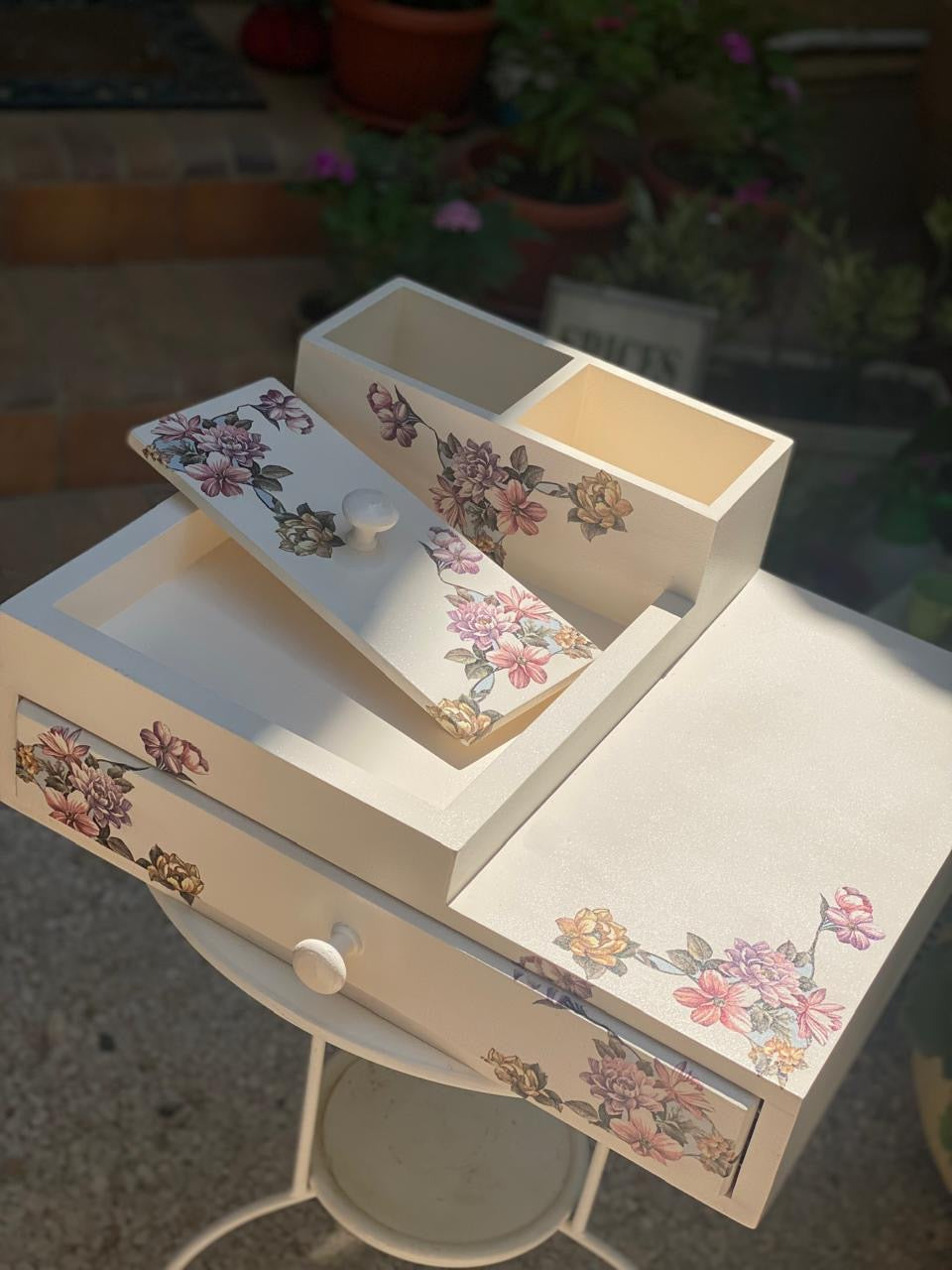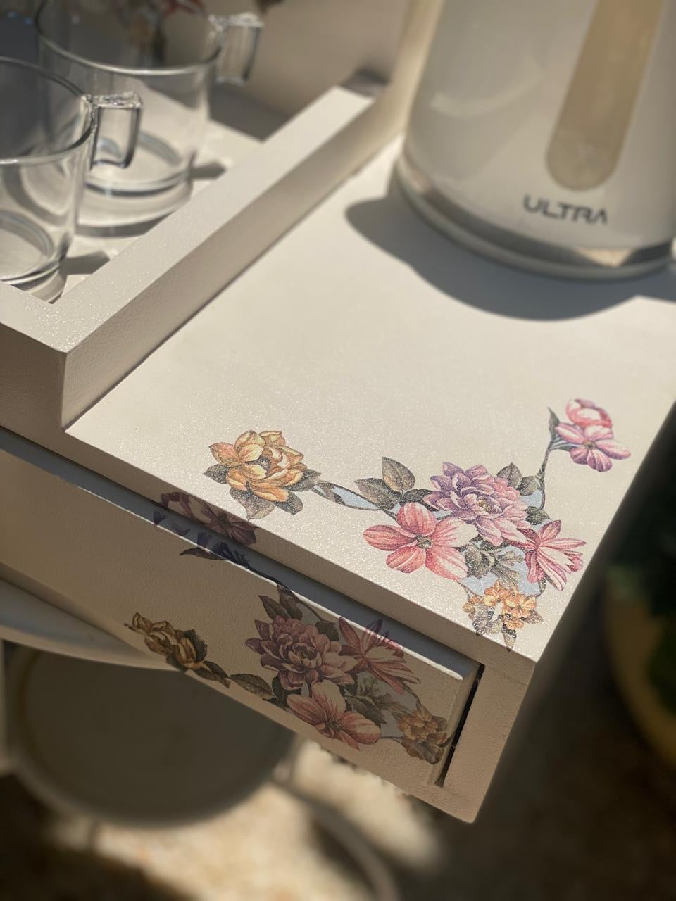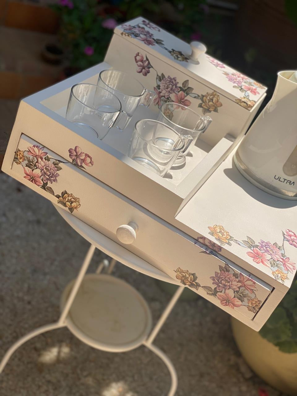 كوفي كورنر صنيه ( بدرج) بيج ساده ورده كارمن