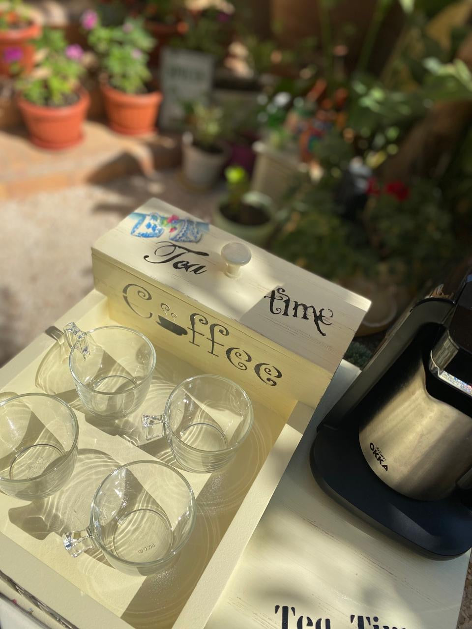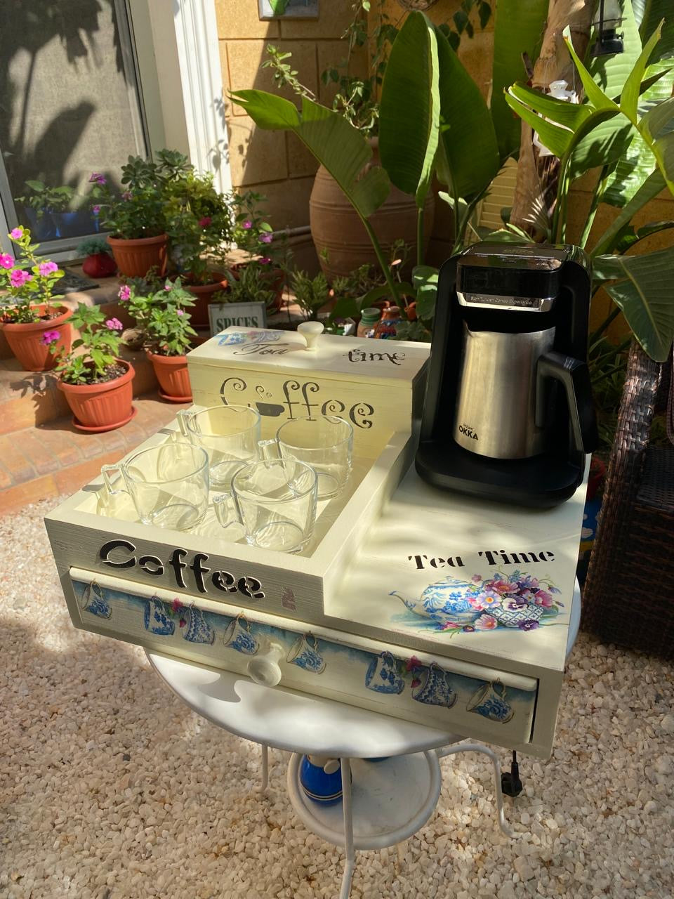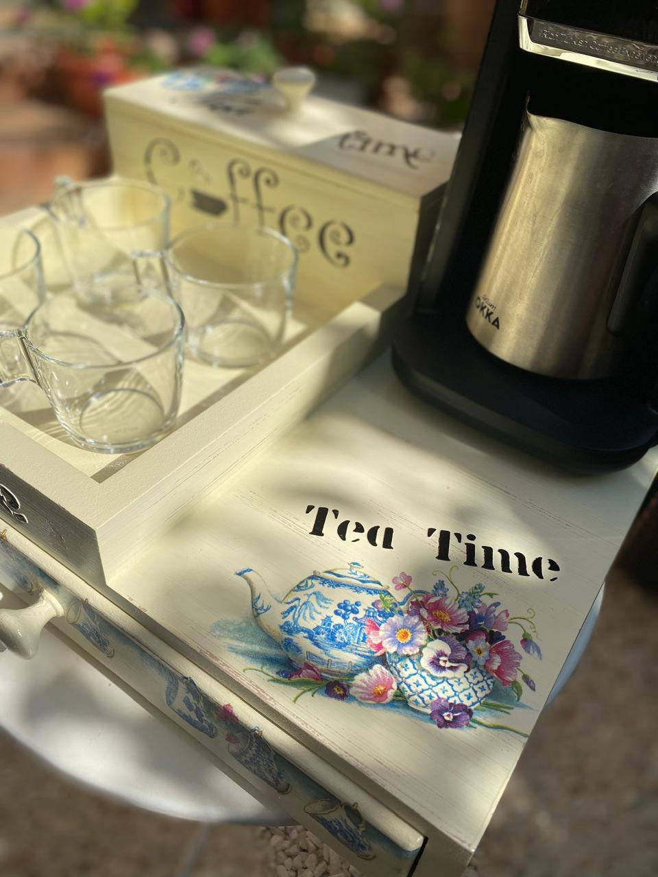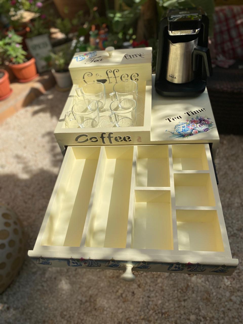 كوفي كورنر صنيه ( بدرج) كريمي ديزاين براد ازرق