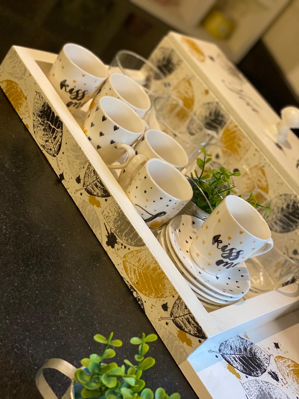كوفي كورنر صنيه كاتل يمين اوف وايت ورق شجر دهبي * اسود